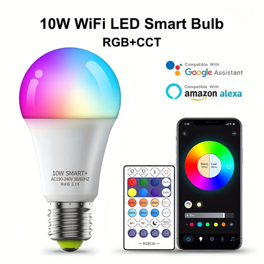 1/2/4pcs Smart LED Light Bulbs A19 10W E27 2700K-6500K Color Changing LED Light Bulb, WiFi & BT5.0, Warm To Cool White, With Color Memory, Timing, And Music Rhythm Dimmable & RGB Smart Home Lighting Works With Alexa Google Assistant