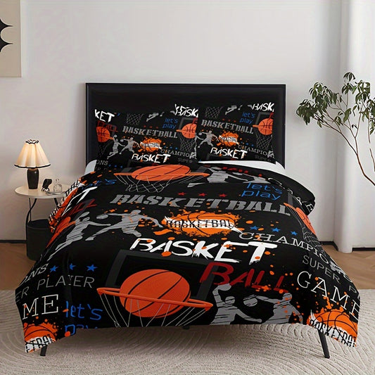 3pcs Duvet Cover Set, Fashion Cartoon Graffiti Basketball Print Bedding Set, Soft Comfortable Duvet Cover, For Bedroom, Guest Room (1*Duvet Cover + 2*Pillowcase, Without Core)