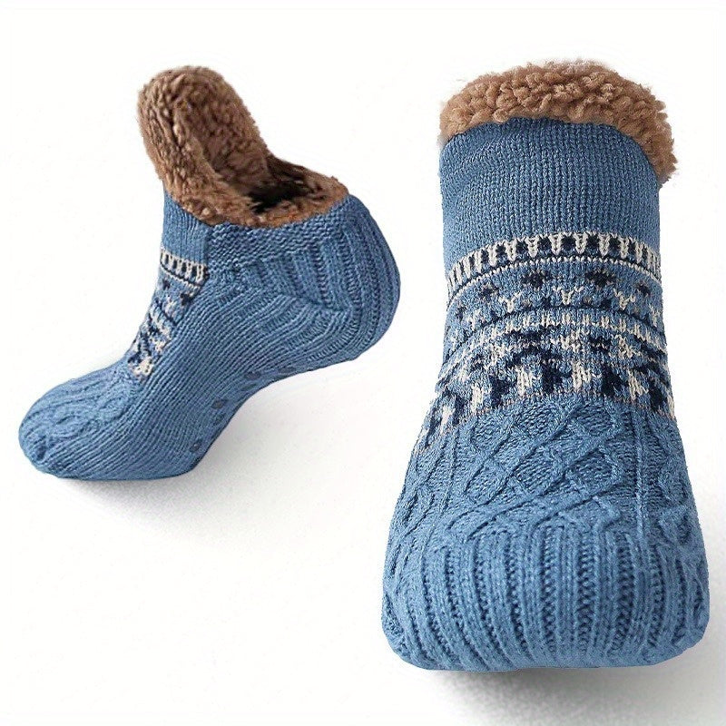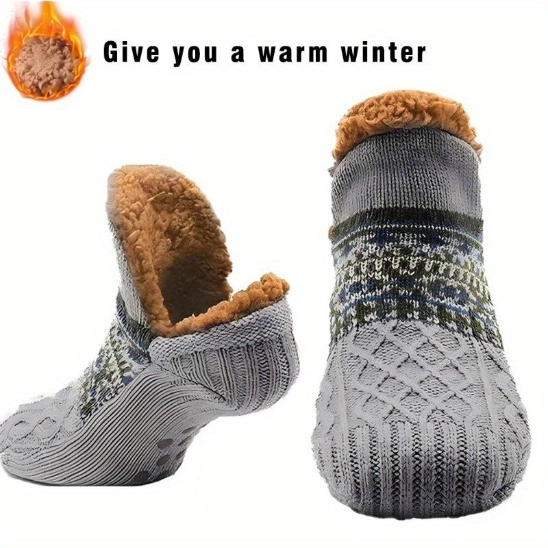 1 Pair Cozy Knitted Slip-On Socks, 100% Acrylic Warm Fleece-Lined Slippers, Non-Slip Comfortable Indoor Outdoor Footwear for Men and Women