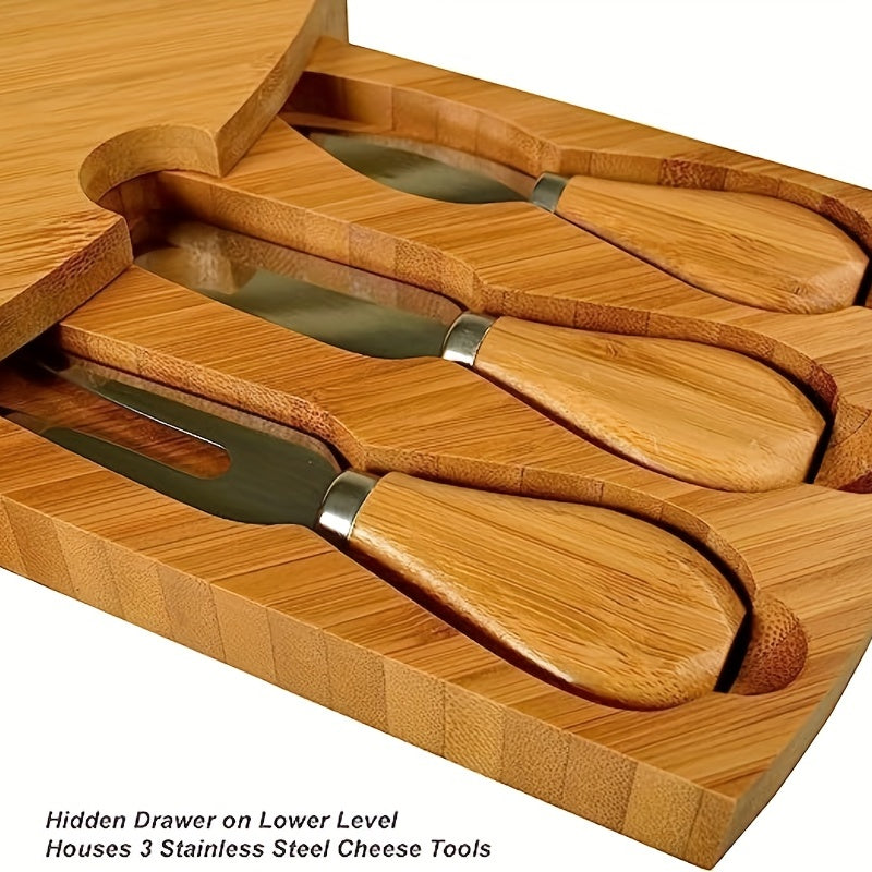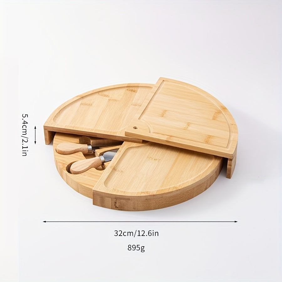 1 Set, Bamboo Cheese Board With Cheese Knife Set, Bamboo Charcuterie Cheese Board With Knife Set, Cheese Plate, Rotating Serving Plate For Cheese And Appetite Gifts, Cheese Tool, Kitchen Accessaries