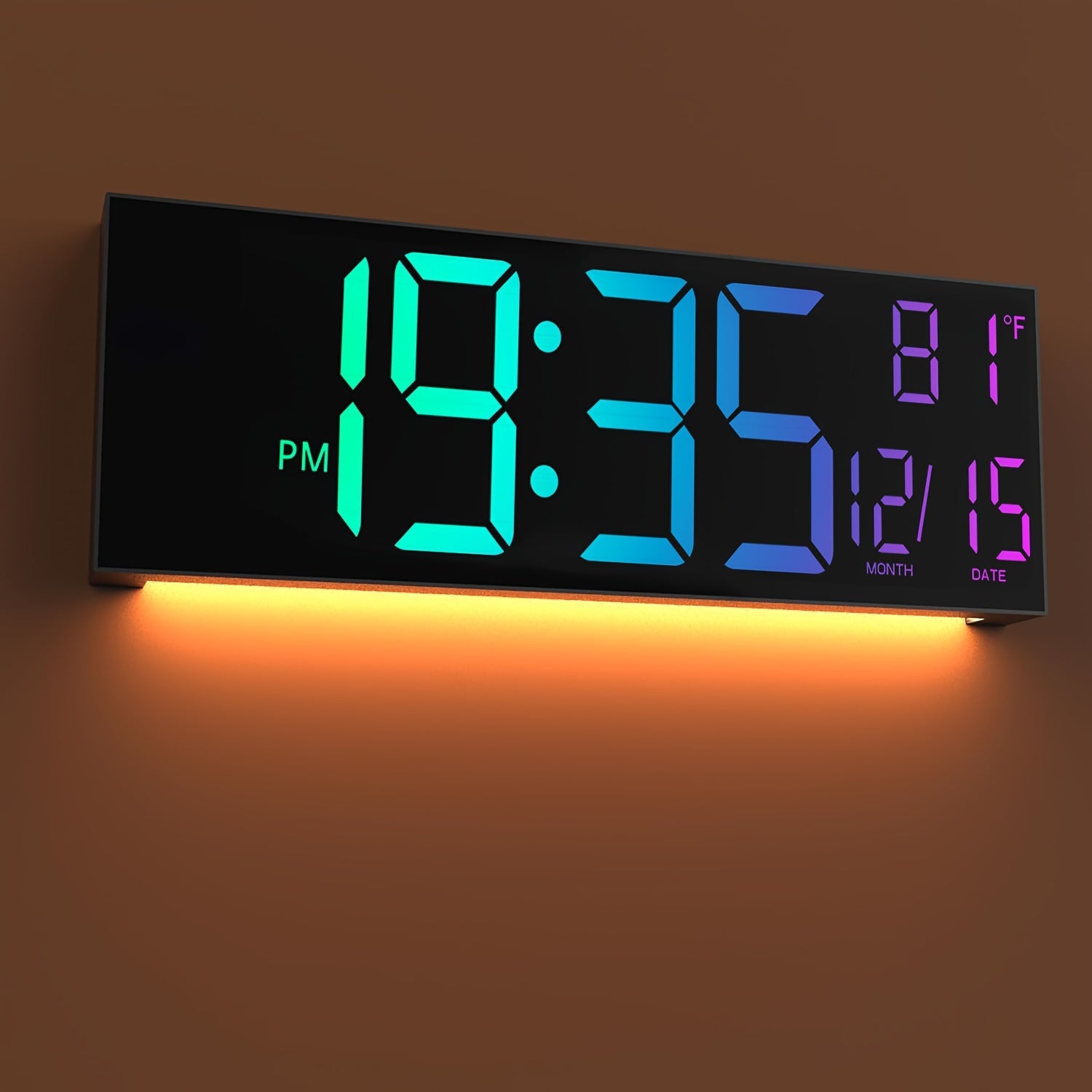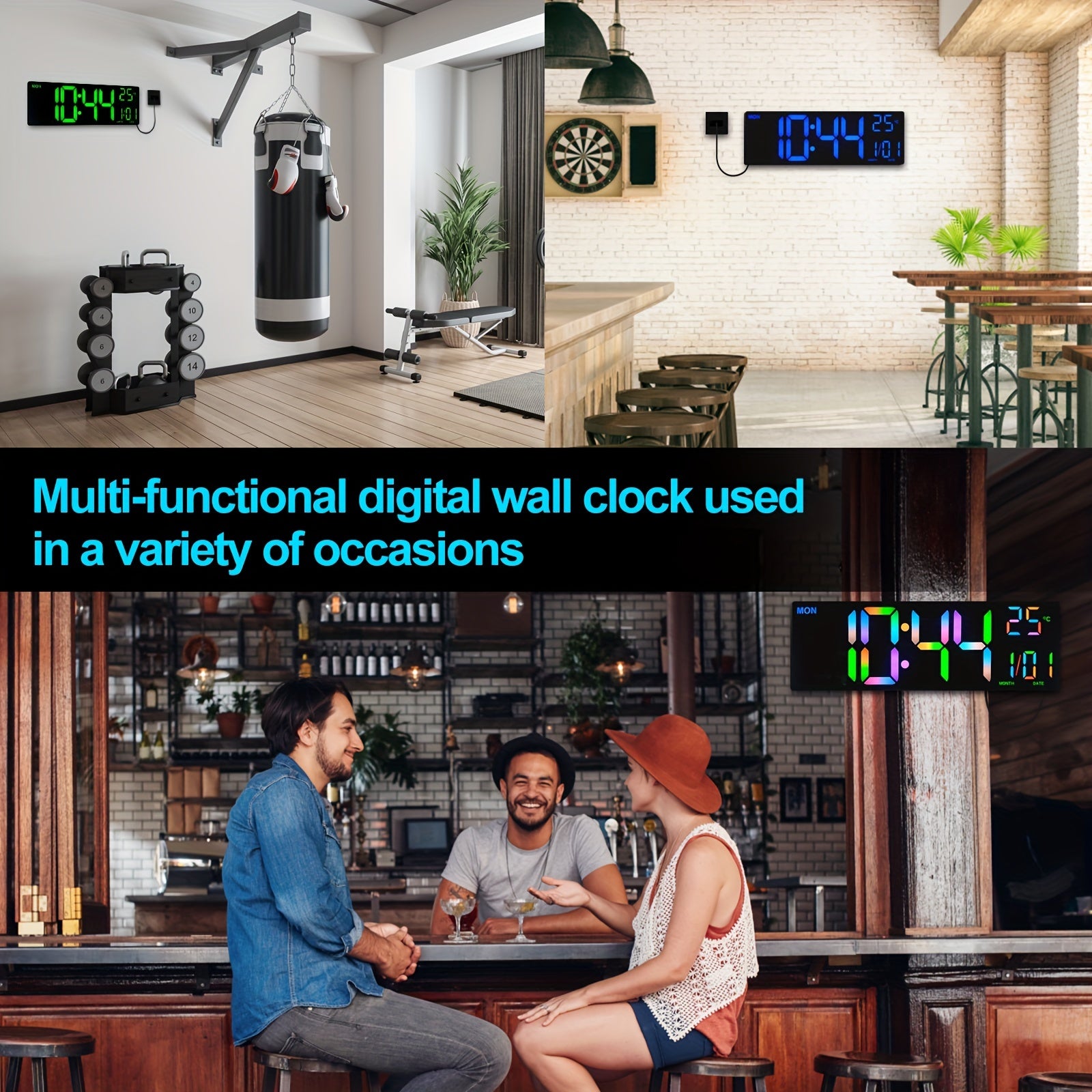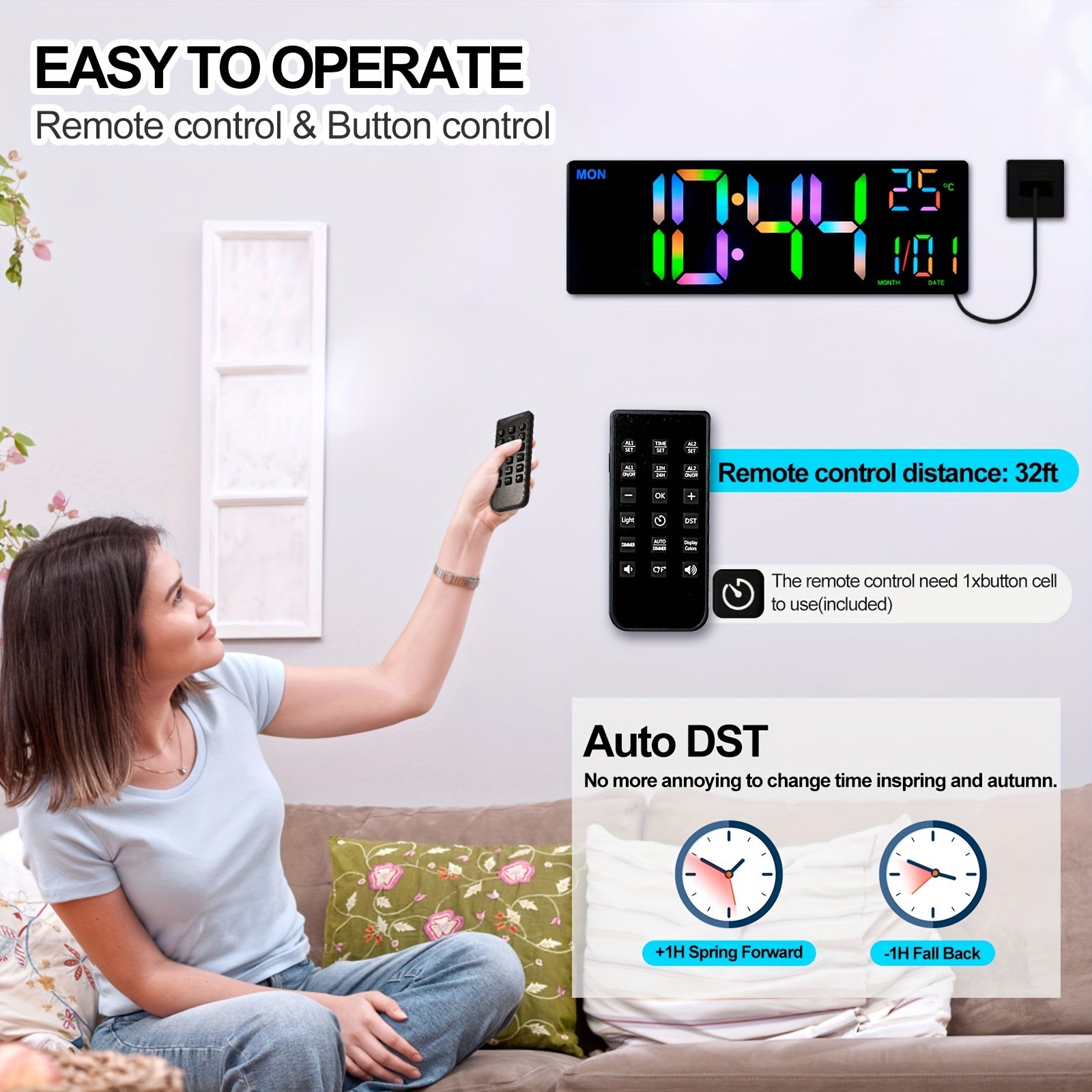 1pc 16 Inch Large Screen Digital Wall Clock, 8 RGB Color Modes, Dual Alarm, With Remote, Auto DST, Plastic, LED Display For Living Room, Bedroom, Easter, Mother's Day Gift - (40.6cm)