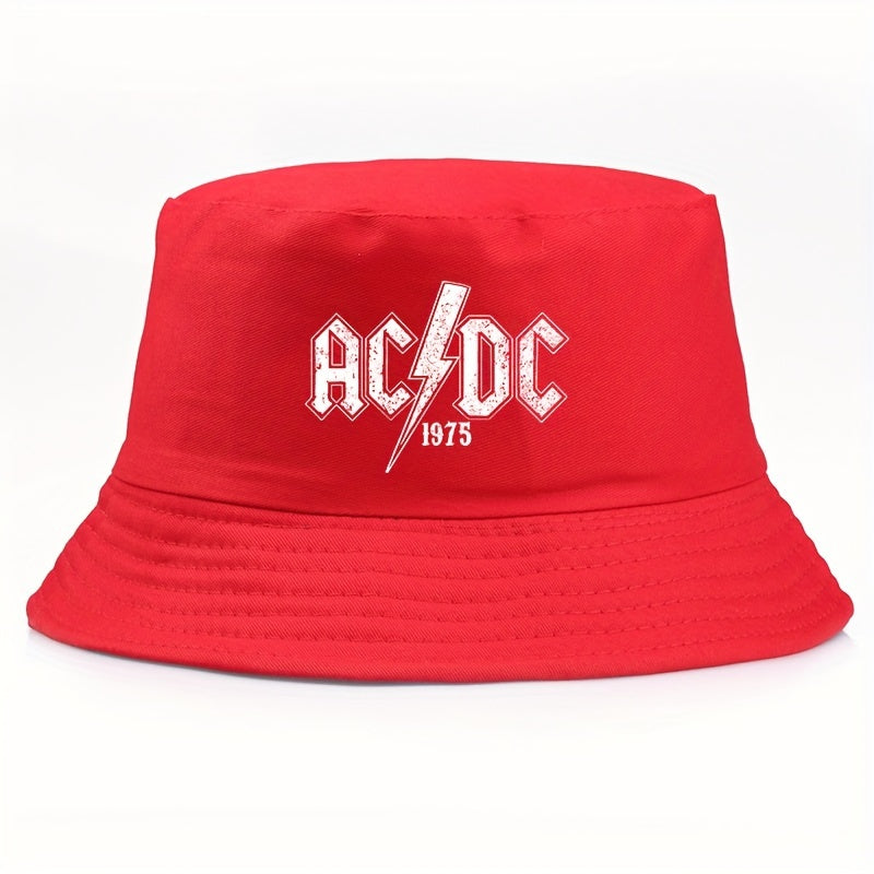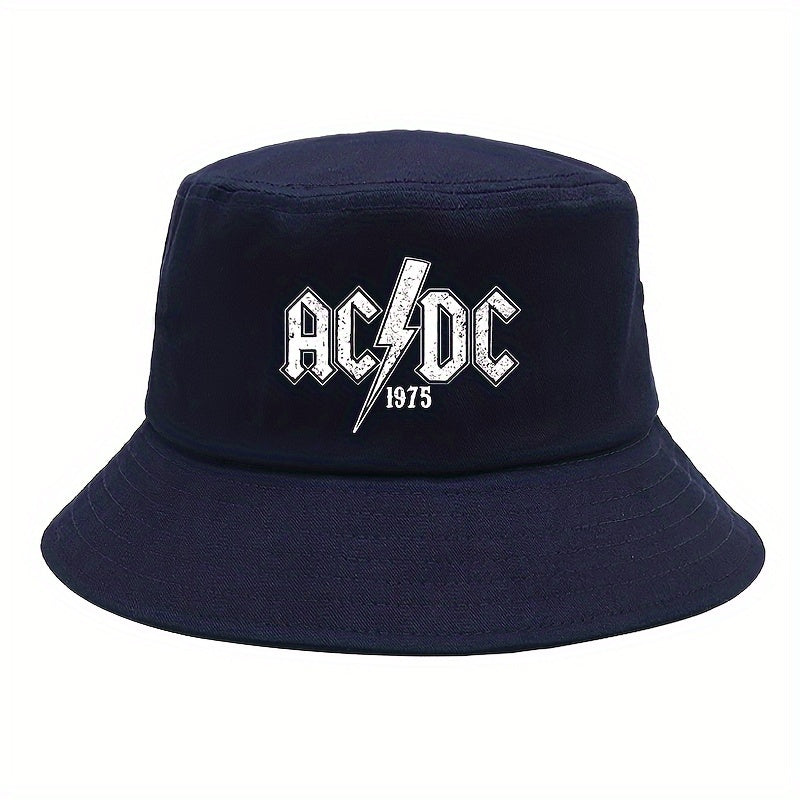 1pc AC/DC 1975 Men's Bucket Hat - Elegant Style, Lightweight, Reversible, Polyester, Knitted, Sun Protection, Casual Outdoor Fisherman Cap, for Daily Wear / Fashion Accessory,