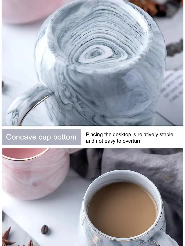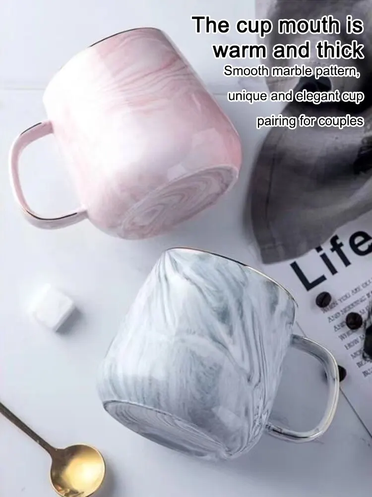 1PC Ceramic Cup Nordic Gold Rim Coffee Oatmeal Breakfast Cup Creative Personality Mug Marble Pattern