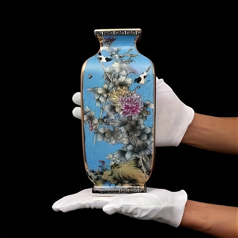 1pc Chinese Enamel Painted Gold Blue Private Room Flower And Bird Vase, Antique Porcelain Collection, Excellent Home Decoration