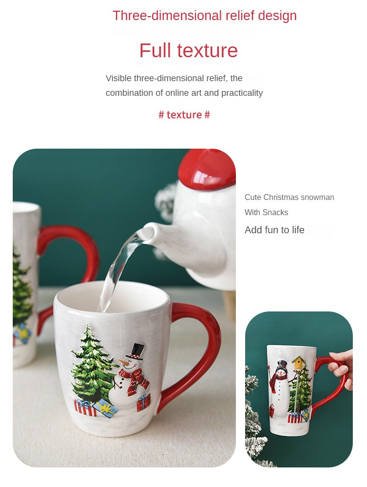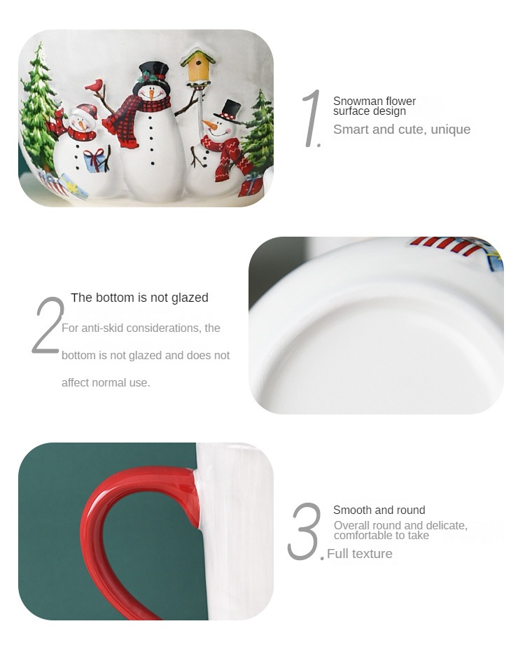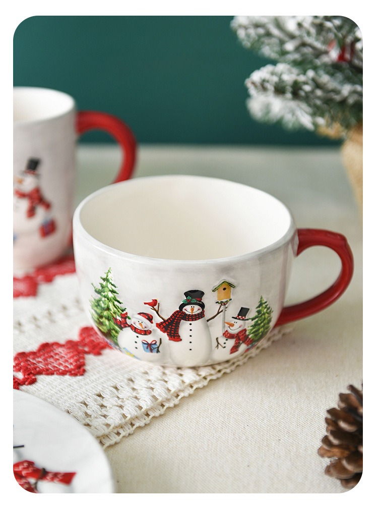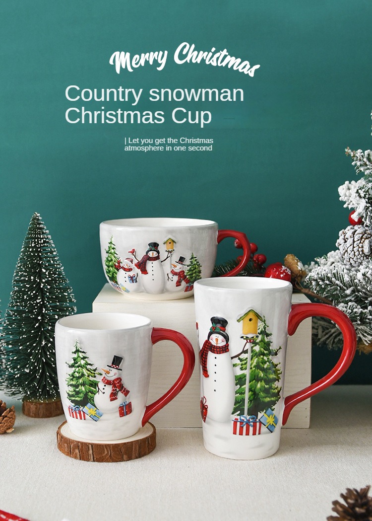 1pc, Christmas snowman ceramic coffee cup, ceramic coffee cup, embossed tableware, household water cup, holiday gift ideas.