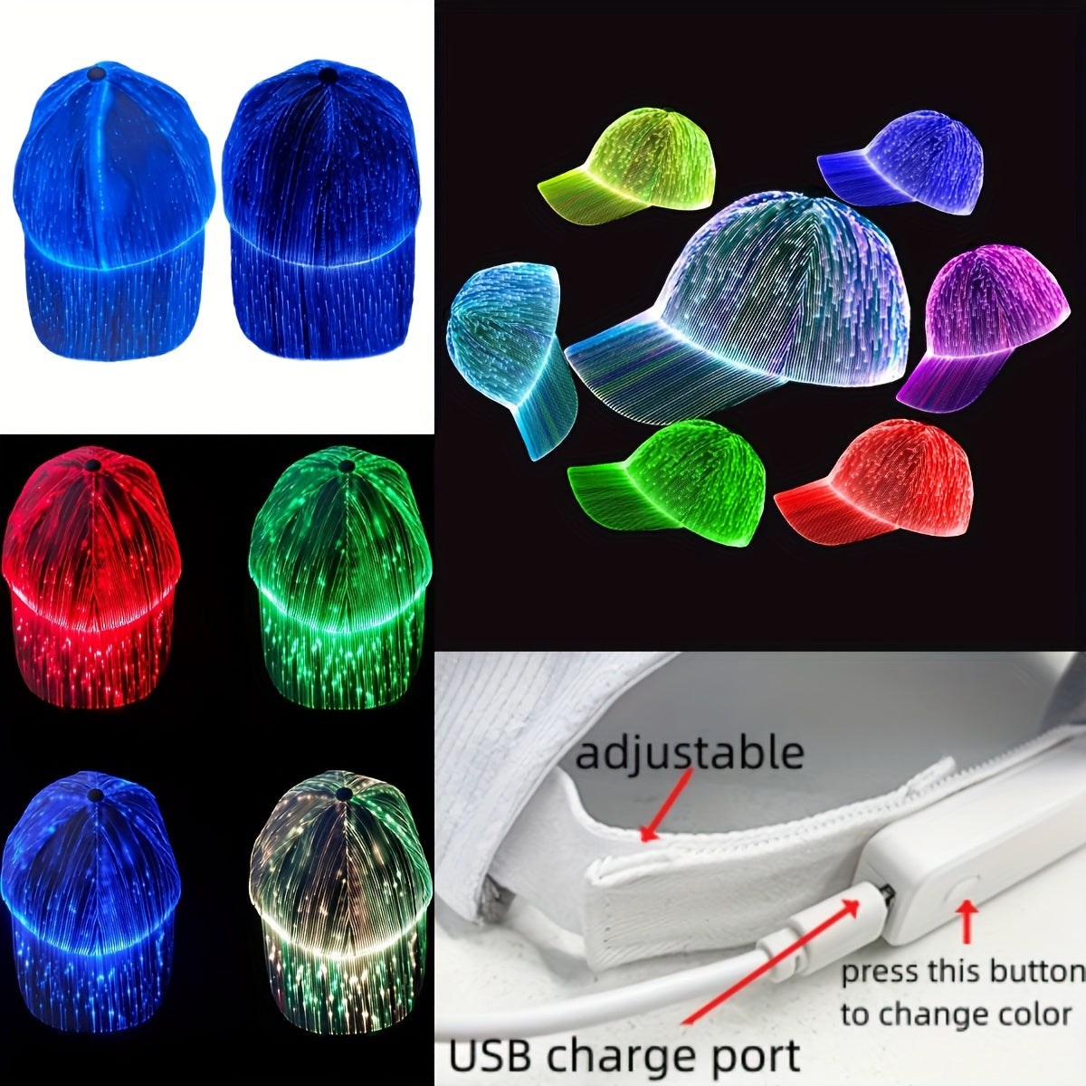 1pc LED Glowing Cap, Luminous Baseball Hat, 7 Colors Glow Hat, USB Charging Light Up Caps, Different Changing Modes Cool Glowing Hats Party Gift halloween christmas gift