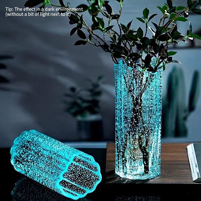 1pc Luminous Glass Vase, Flower Vase For Living Room Decor, Spring Summer Home Table Decor, Spring Summer Decor St Patrick's Day Easter Decor, Aesthetic Room Decor