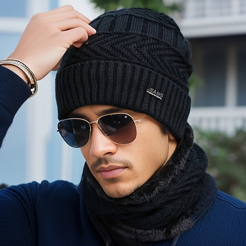 1pc Winter Plush Warm Hat With Windproof Neck Scarf, Outdoor Coldproof Thickened Knitted Hat