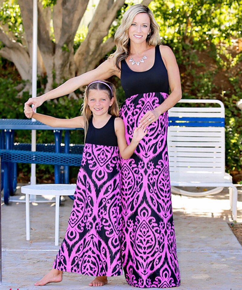2021 Family Matching Outfits Clothes Summer Sleeveless Long Dresses Women Mother And Daughter Beach Maxi Bandage Bodycon Dress