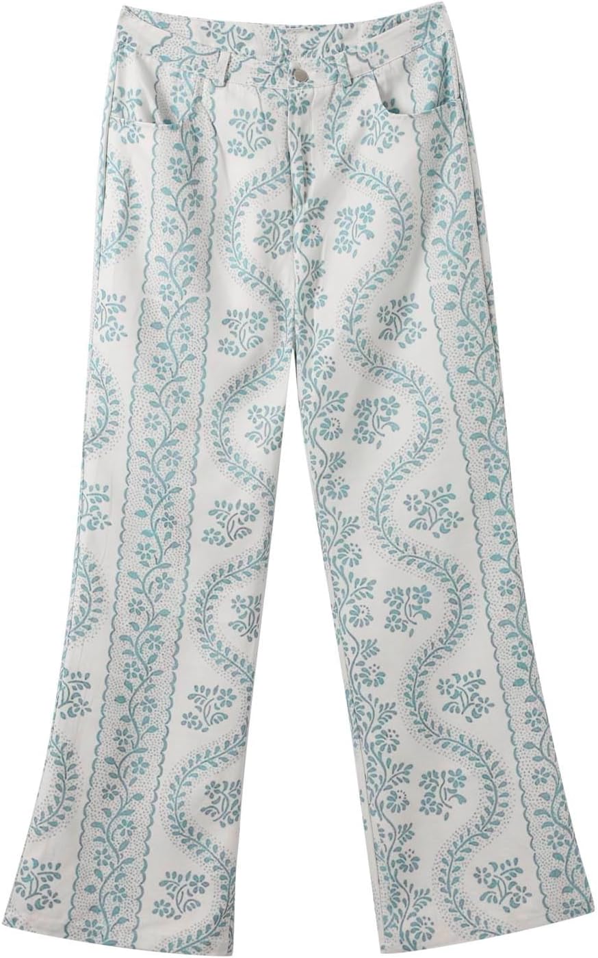 Generisch offers these stunning and stylish jeans, featuring a vintage 90s-inspired wide-leg and high-waisted design. Ideal for casual wear, their fashionable floral pattern adds a unique and trendy touch.