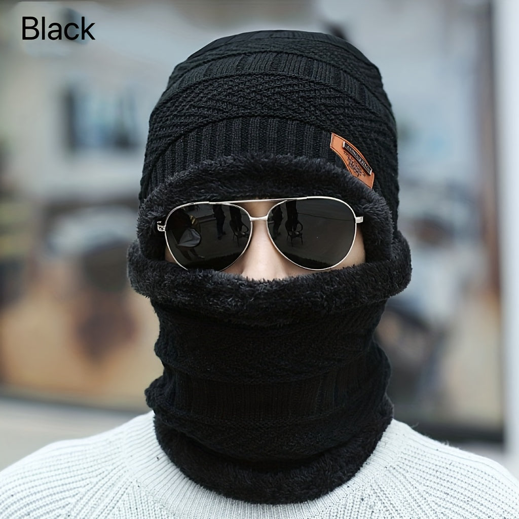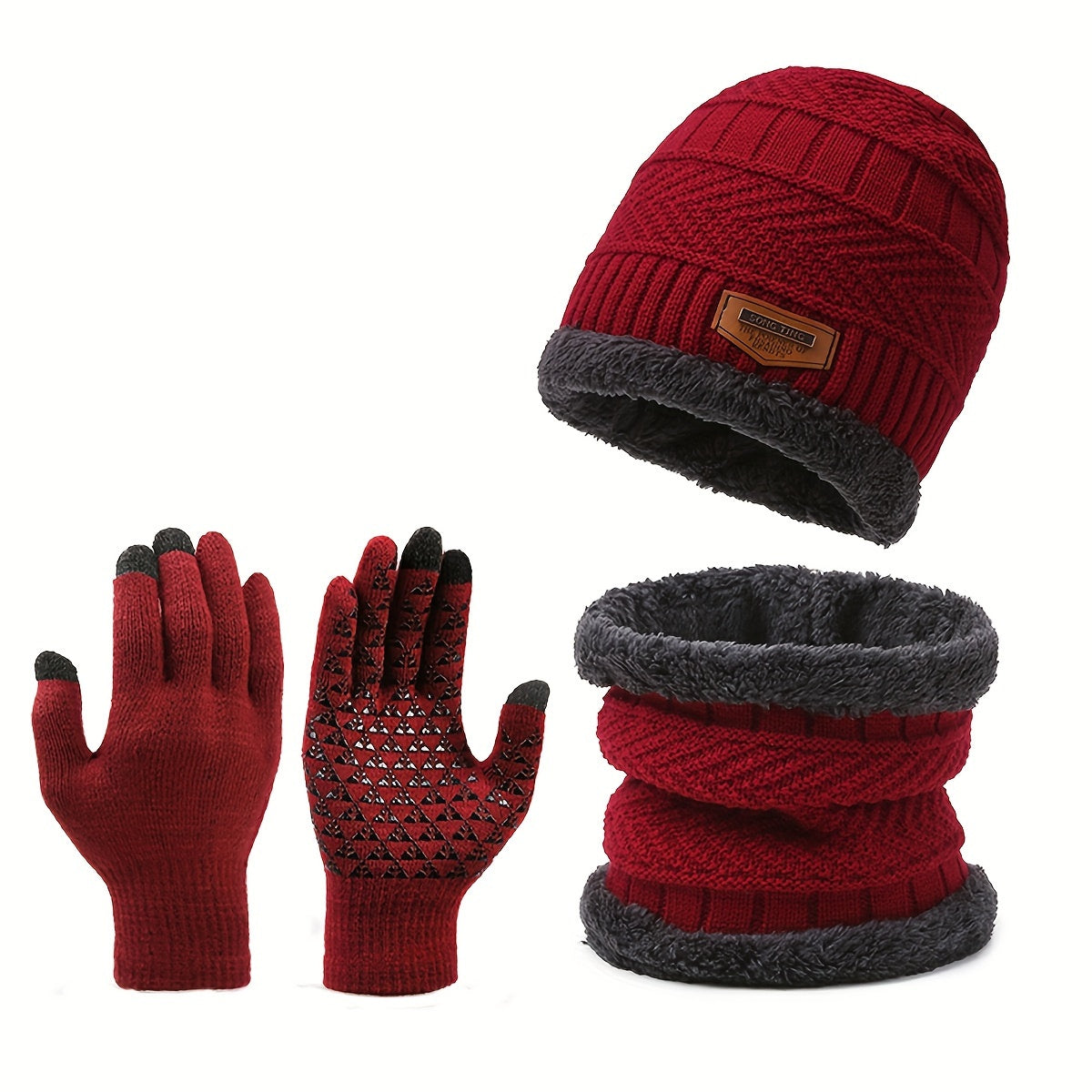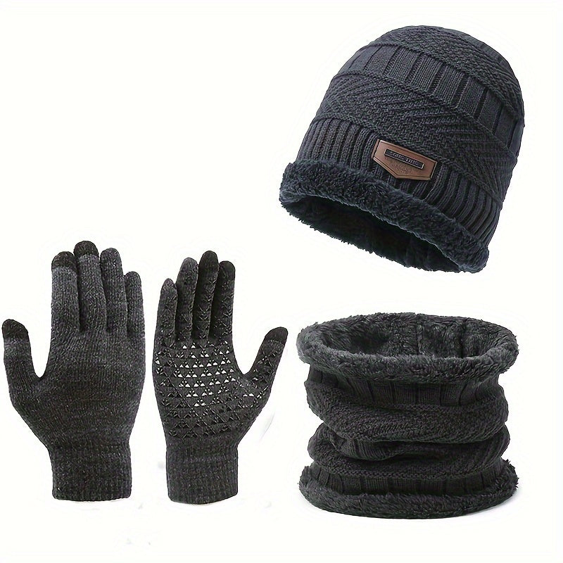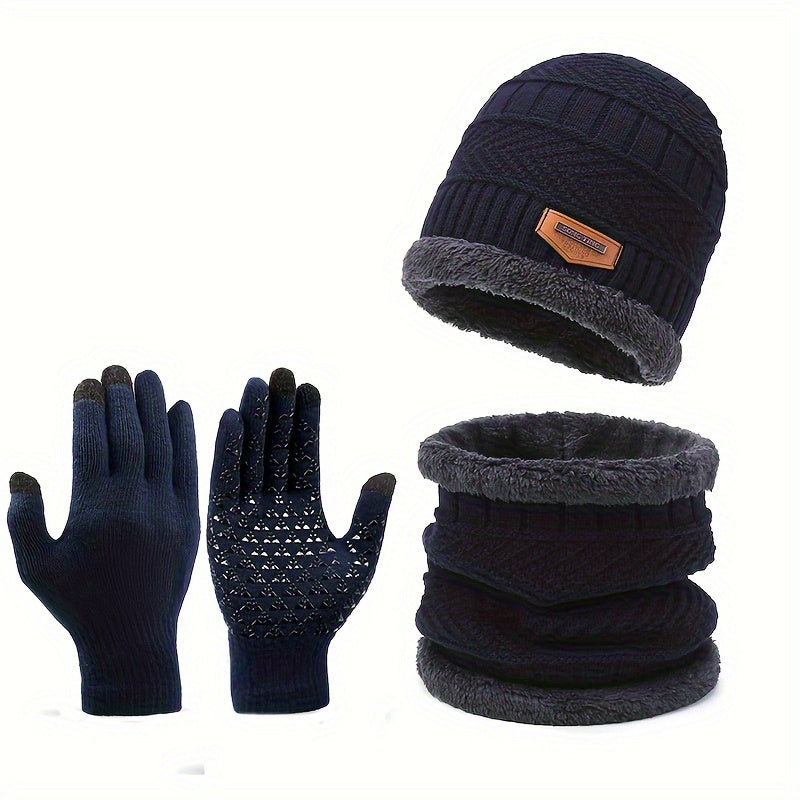 2pcs+1pair Winter Knitted Hat, Warm Neck, Warm And Touchable Screen, Finger Splitting, Non Slip Adhesive Wrist Protector For Men And Women , Ideal choice for Gifts