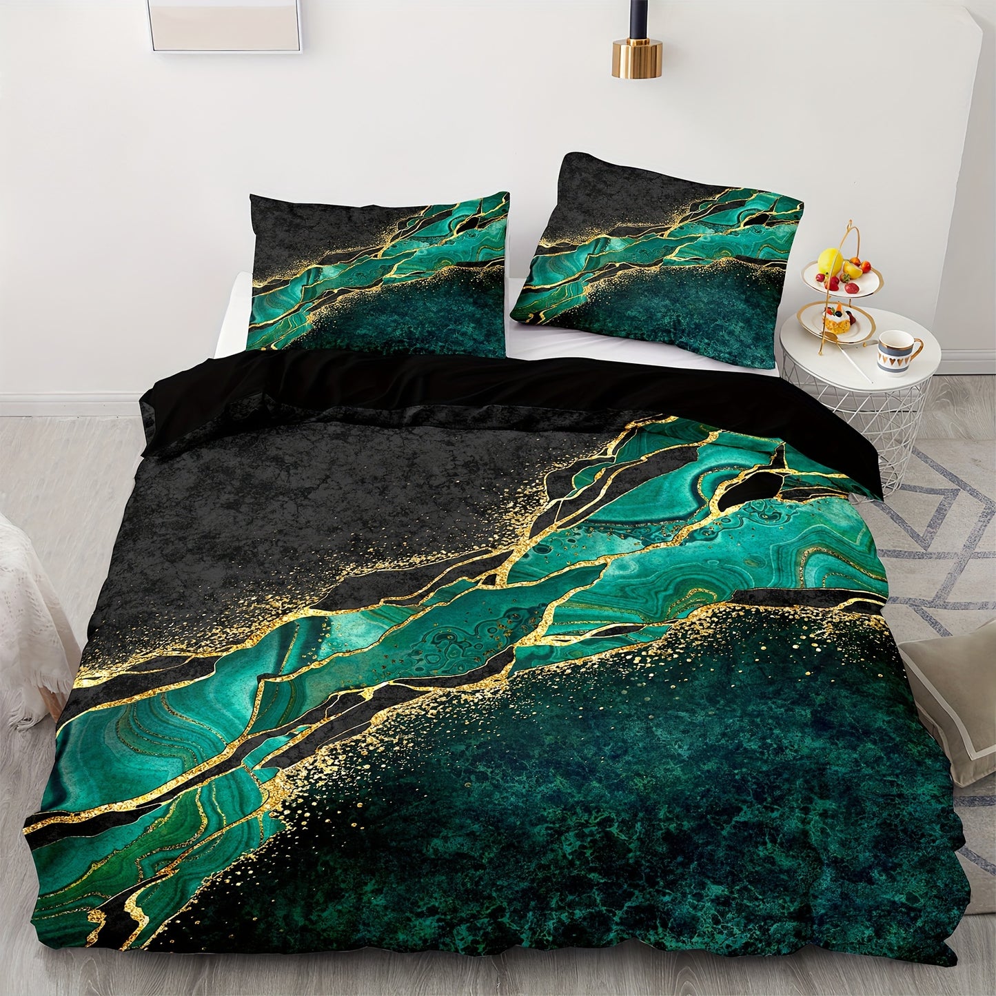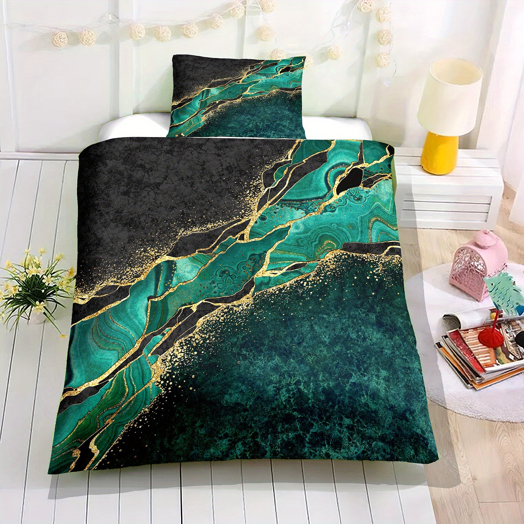 2pcs/3pcs Green Gold Marble Duvet Cover Set, HD Digital Printing Bedding Set, Soft Comfortable Duvet Cover, For Bedroom, Guest Room (1*Duvet Cover + 1pc/2pcs*Pillowcase, Without Core)