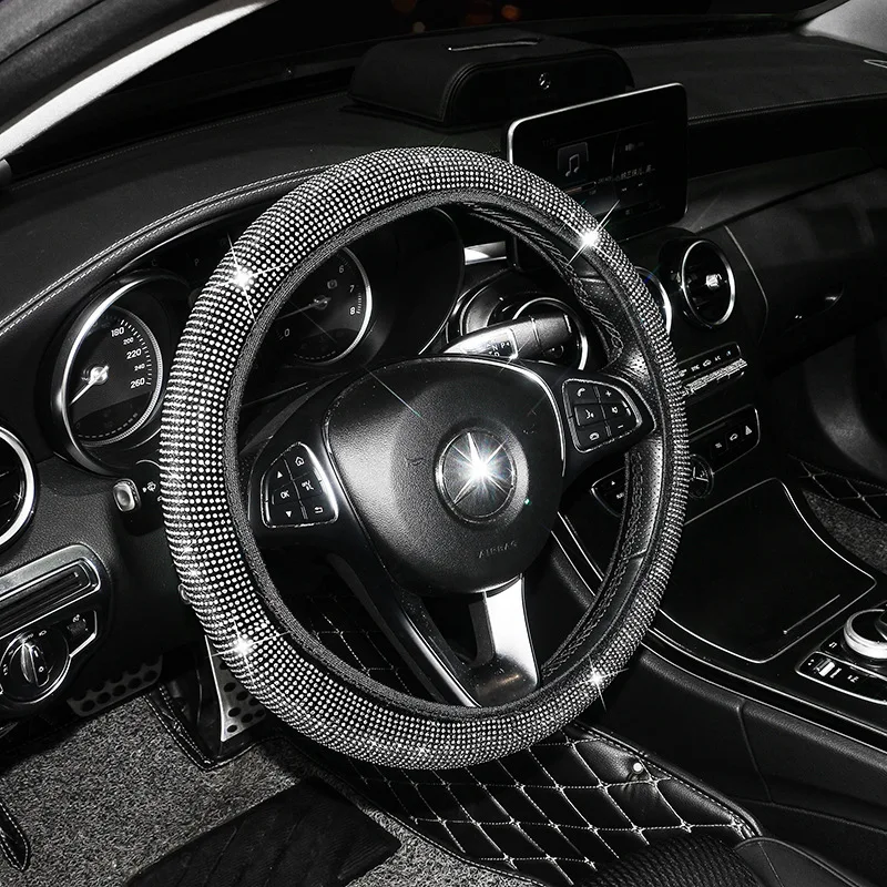 Designed with both style and functionality in mind, this steering wheel cover is a must-have for any car owner. The exquisite mesh rhinestone and piecing process give it a unique and beautiful appearance, while the non-slip rubber inner circle adds practicality and safety. The multi-faceted sparkling rhinestones with rounded edges not only add a touch of elegance, but also ensure a comfortable grip. Upgrade the interior of your car with this soft and breathable steering wheel cover.