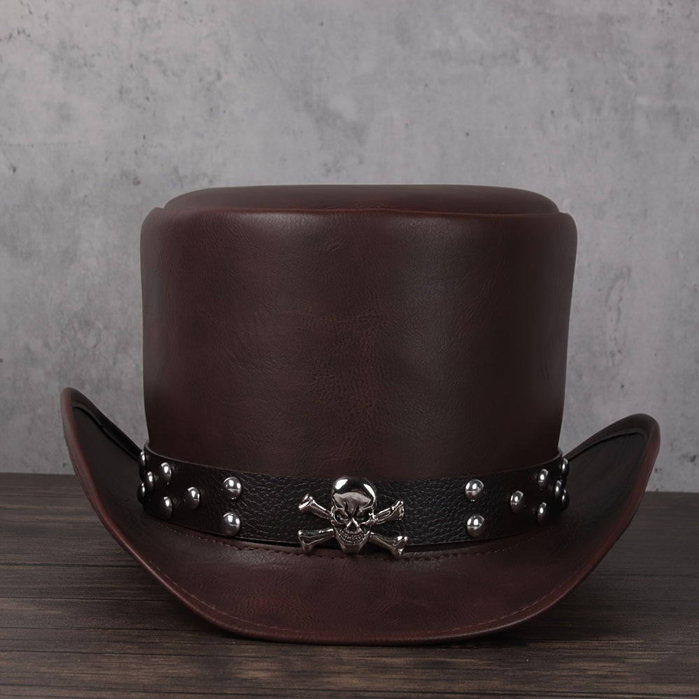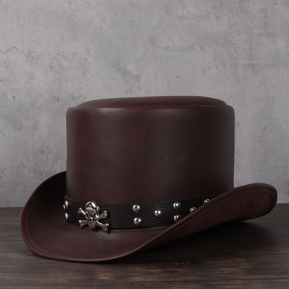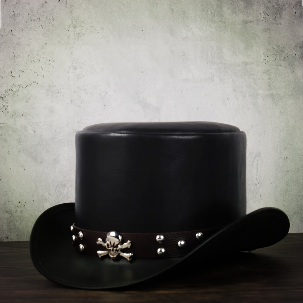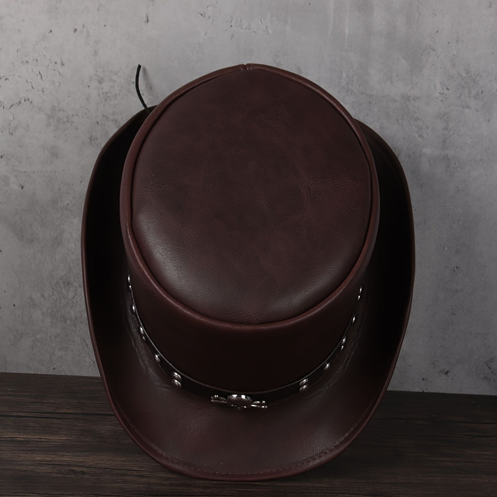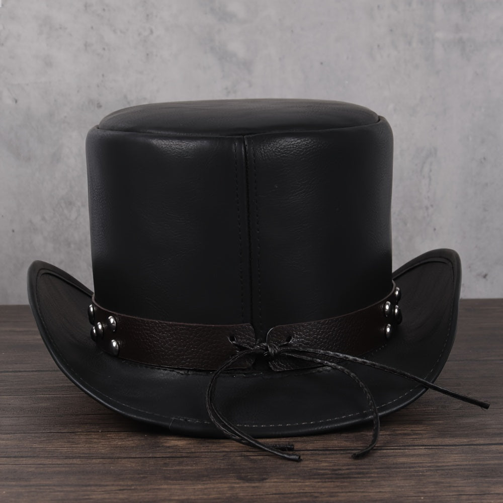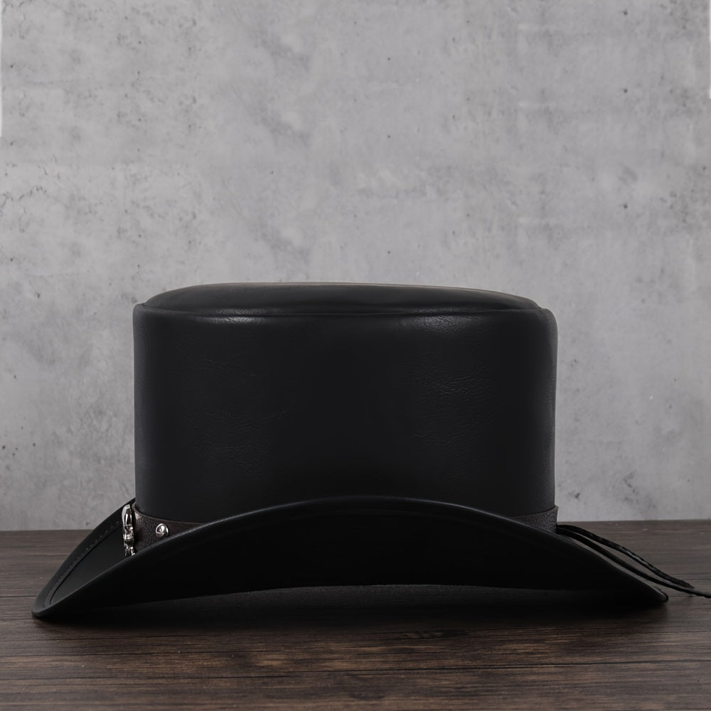 3pcs 13CM Unisex PU Leather Top Hat - Classic President Fedora Hat for Cosplay, Magician, Steampunk, Party - Adjustable, Soft, Breathable, Comfortable