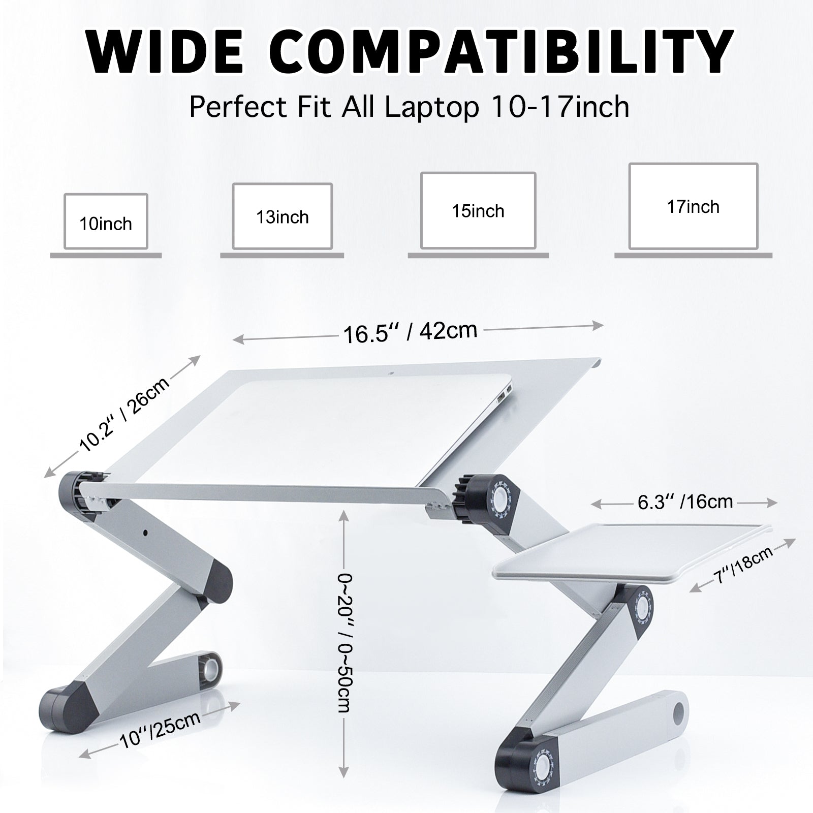 Adjustable Laptop Stand, RAINBEAN Laptop Desk with 2 CPU Cooling USB Fans for Bed Aluminum Lap Workstation Desk with Mouse Pad, Foldable Cook Book Stand Notebook Holder Sofa,Amazon Banned
