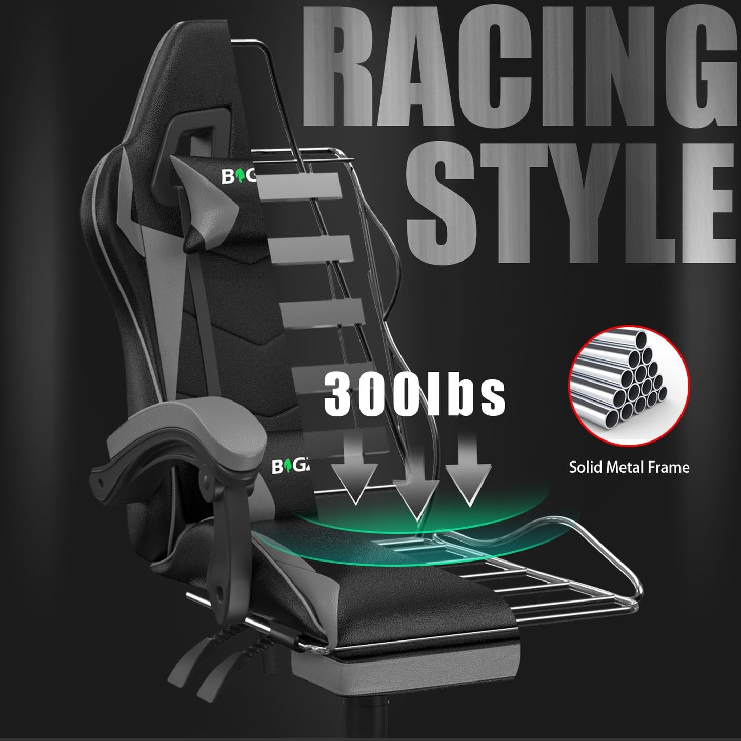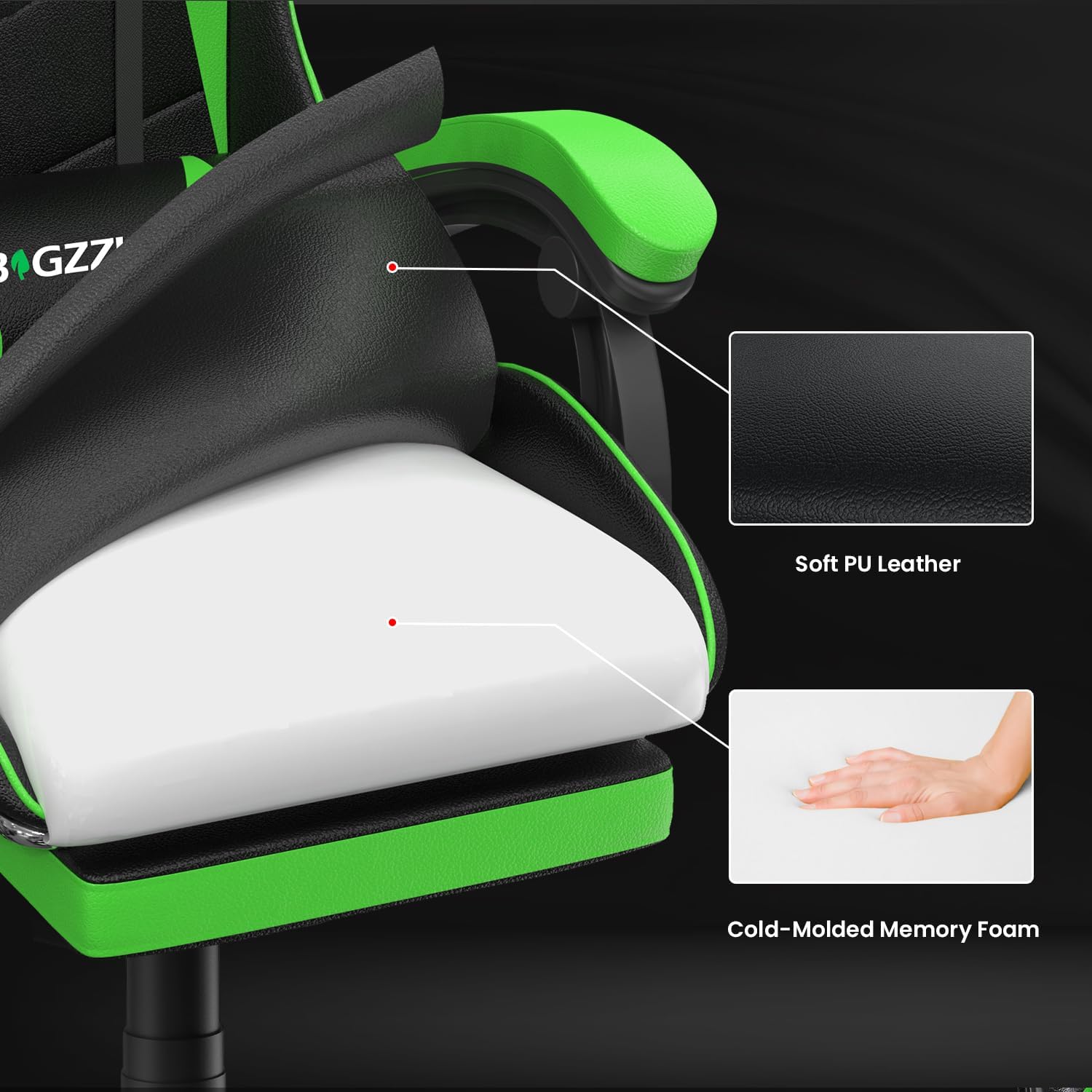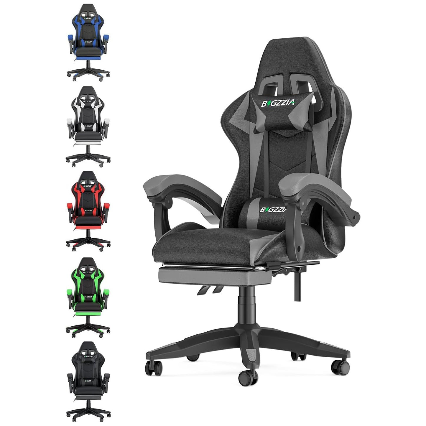 Ergonomic Gaming Chair - Gamer Chairs with Lumbar Cushion + Headrest, Height-Adjustable Office & Computer Chair for Adults, Girls, Boys (With footrest)