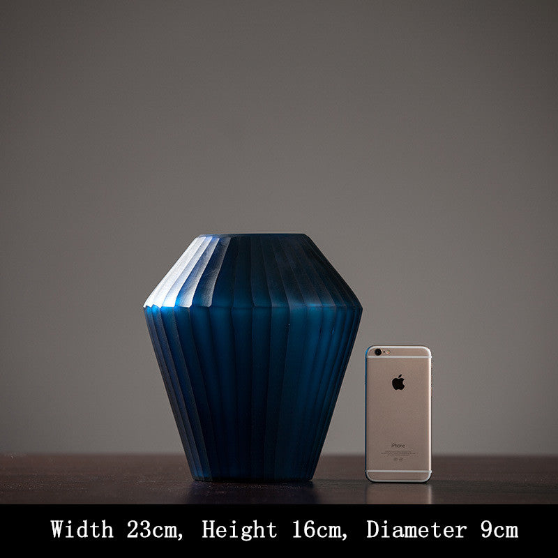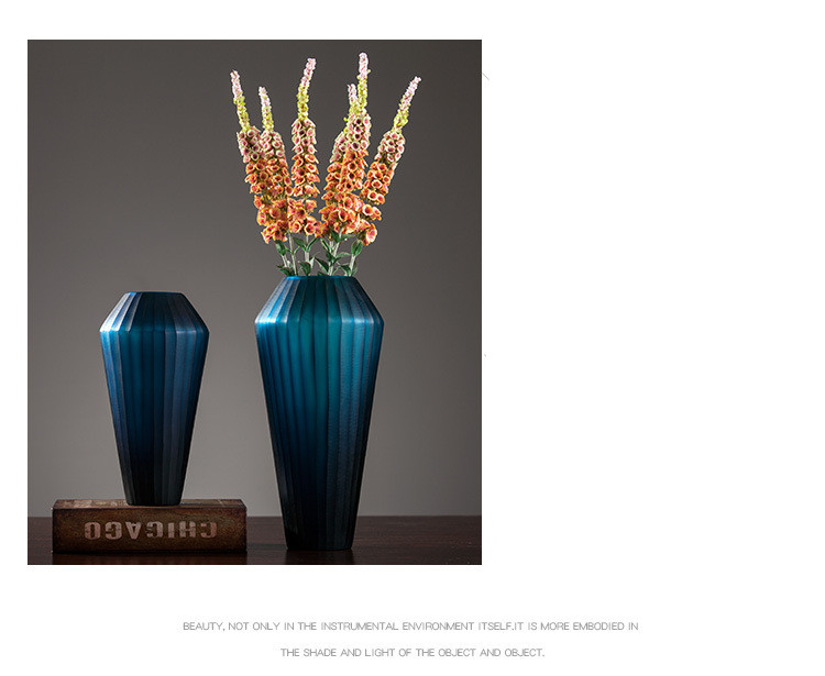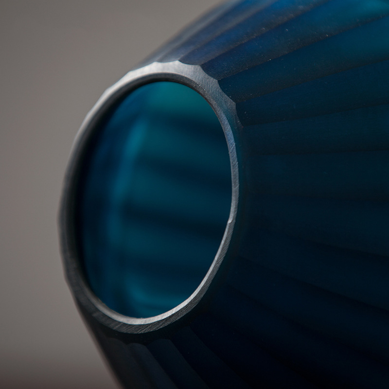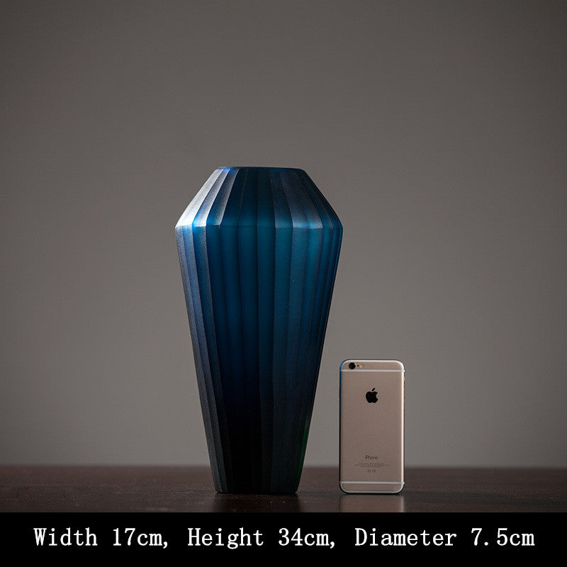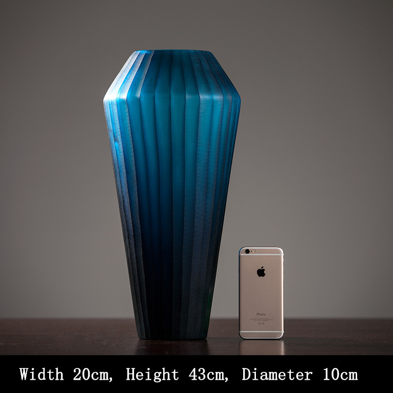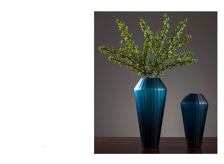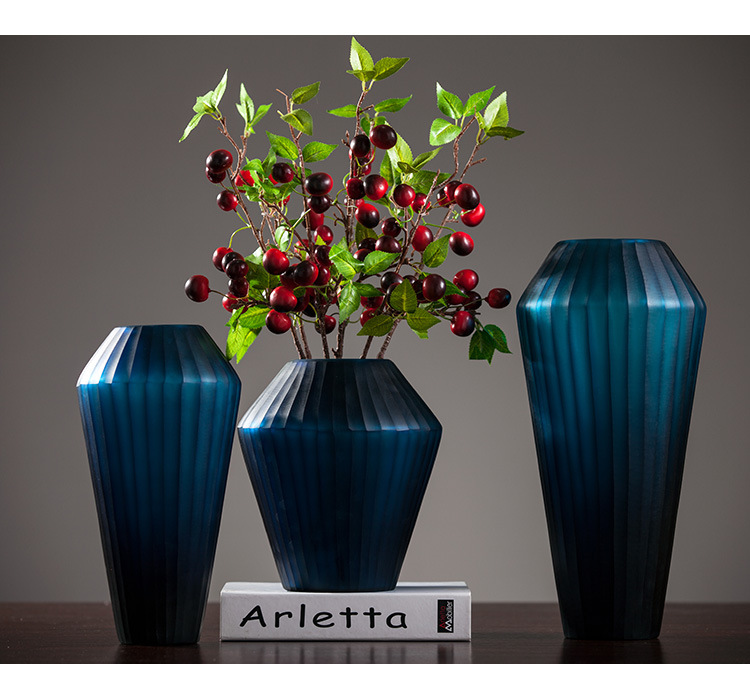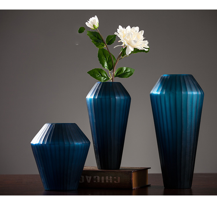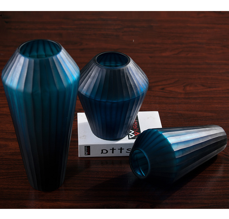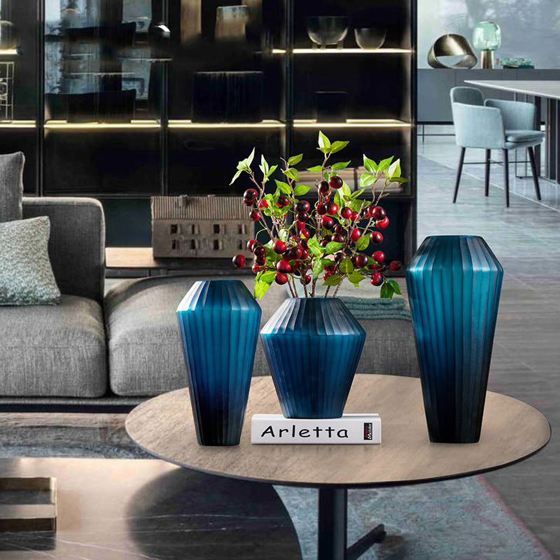 Blue Carved Glass Vase Three Piece Vertical Flower Ornaments