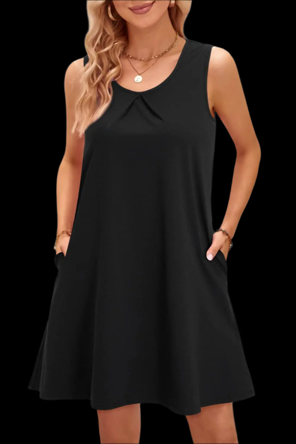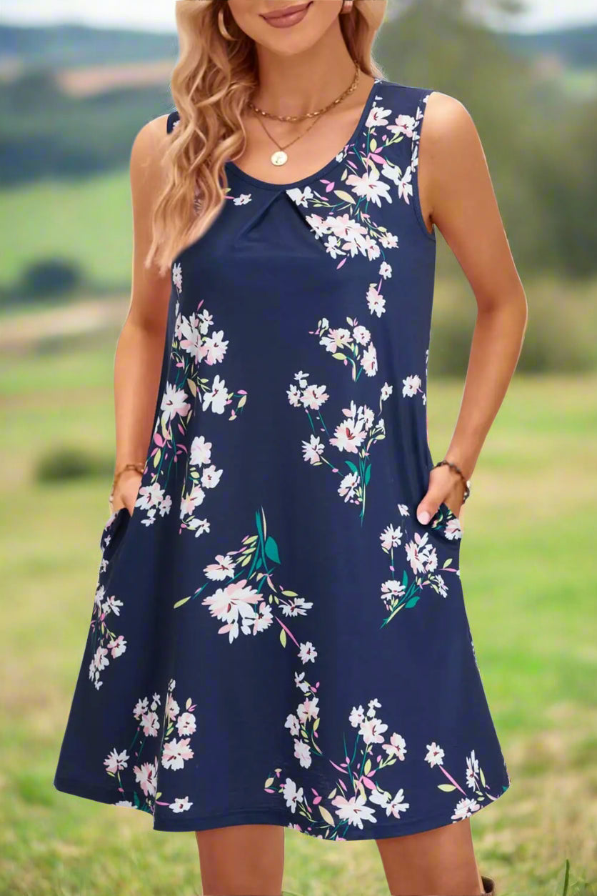 This sleeveless dress features a slight stretch polyester fabric with a loose, straight silhouette for comfortable all-day wear. Its floral pattern and applique details add a charming rustic touch, while the knee-length design and round neckline make it perfect for casual outings or beach days. Easy to pull on and crafted with knit fabric, this versatile dress suits any season and enhances your natural waistline with a flattering fit.