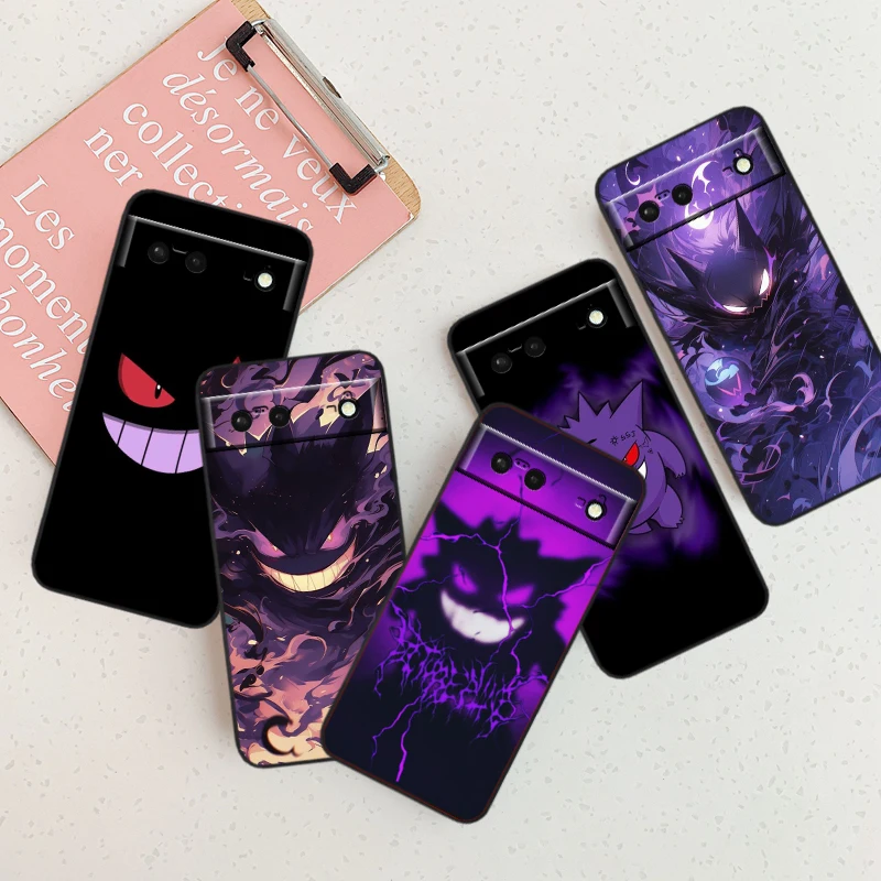 Cartoon P-Pokemones G-Gengars For Google Pixel 9 8 7A 7 6A 6 5A 5 4 4A XL 5G Black Silicon Shockproof Shell Back Phone Case