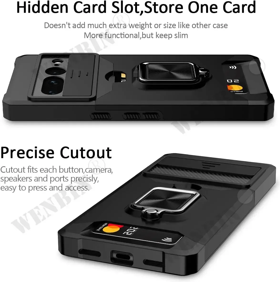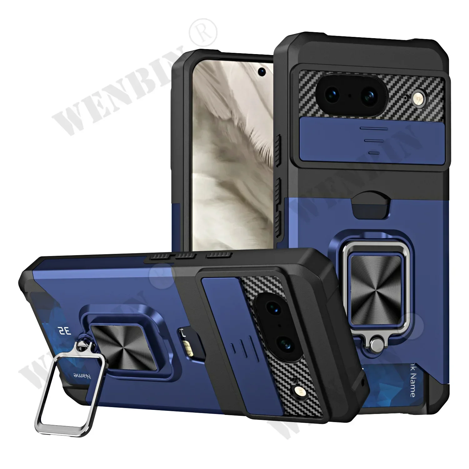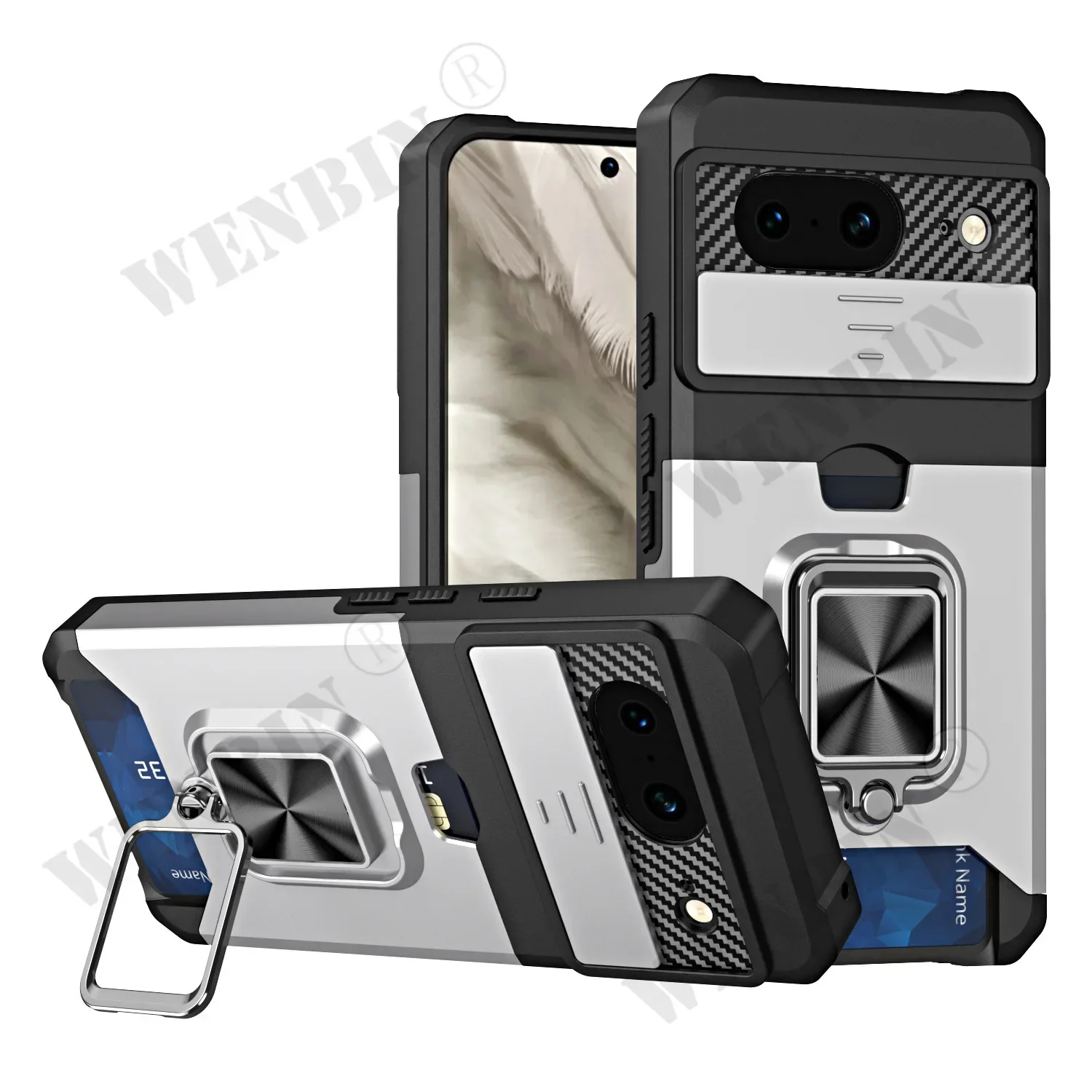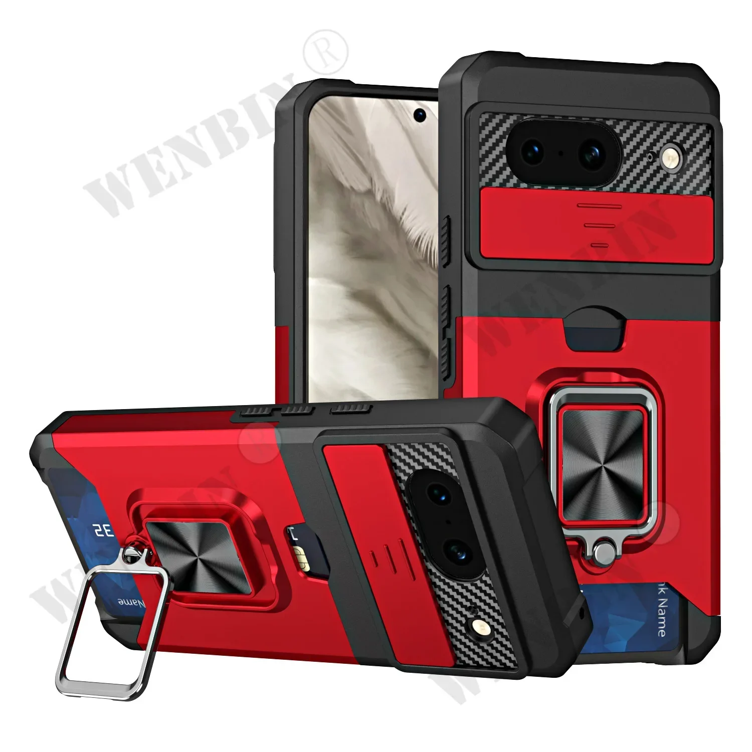 Case For Google Pixel 9 8 Pro XL 8A 7A 6 Sliding Camera Cover and Card Holder Heavy Duty Protective Magnetic Kickstand Ring