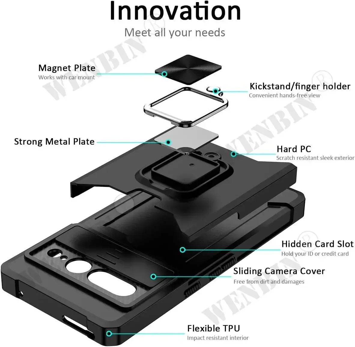 Features:Magnetic,Anti-Fingerprint,Anti-Scratch,Card Pocket,Dual Layer,Dustproof,External Photo Lens,WIth Kickstand