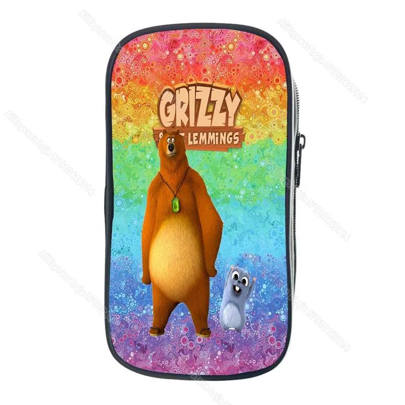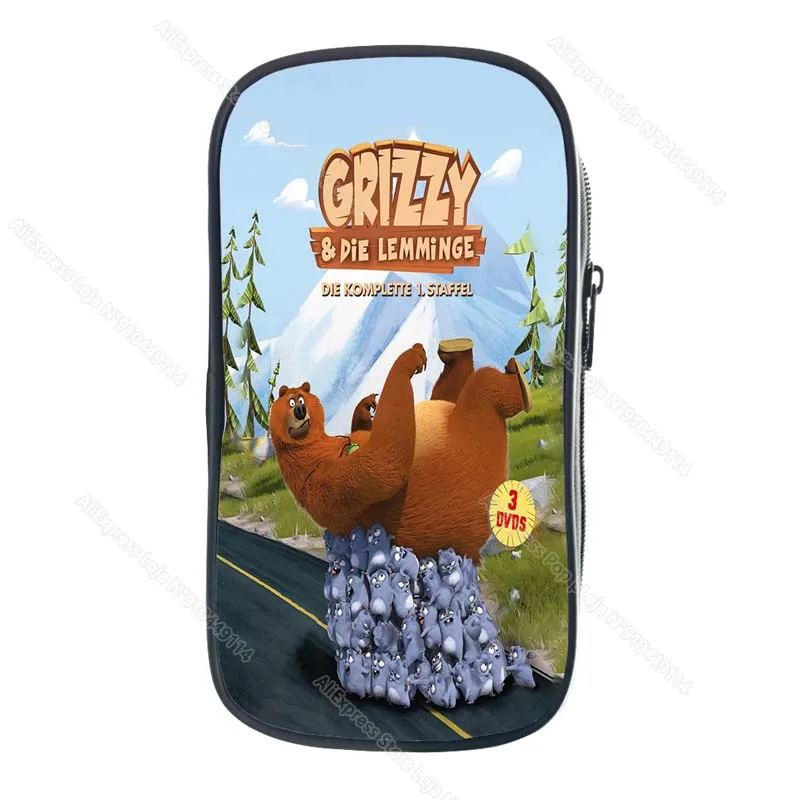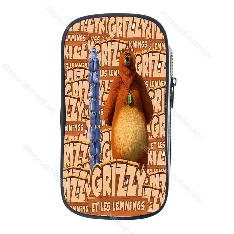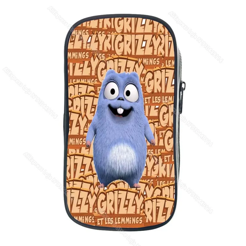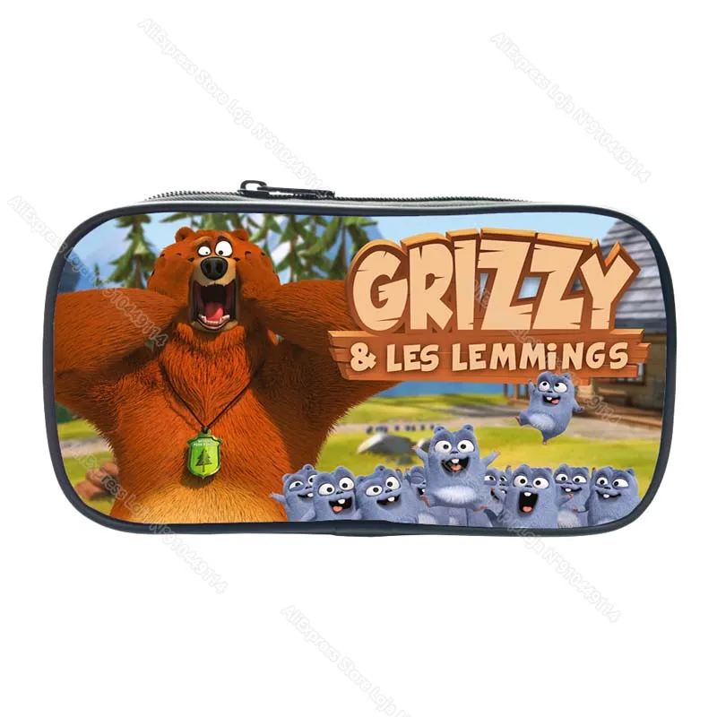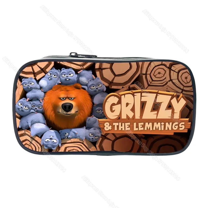 Child Grizzy and the Lemmings Pencil Case Kids Cartoon Anime Game Pencil Box Student Pen Bag Boys Girls Big Capacity Storage Bag