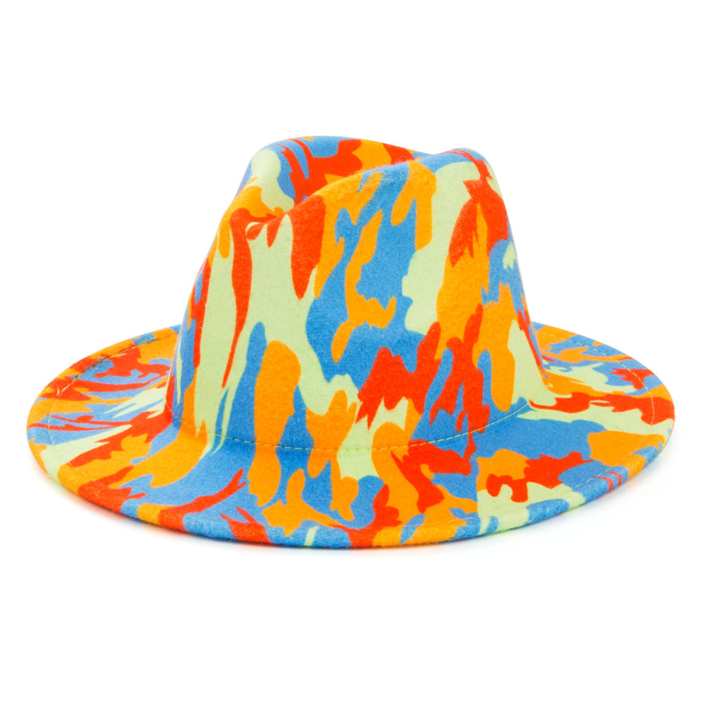 Cloche Hat,1pc Fashion Personality Jazz Hat Men's Colorful Rendering Pattern Top Hat Wide-Brimmed Cloche Hat