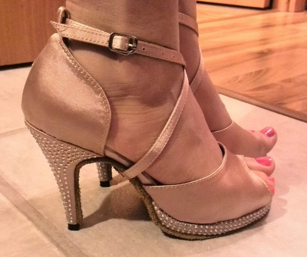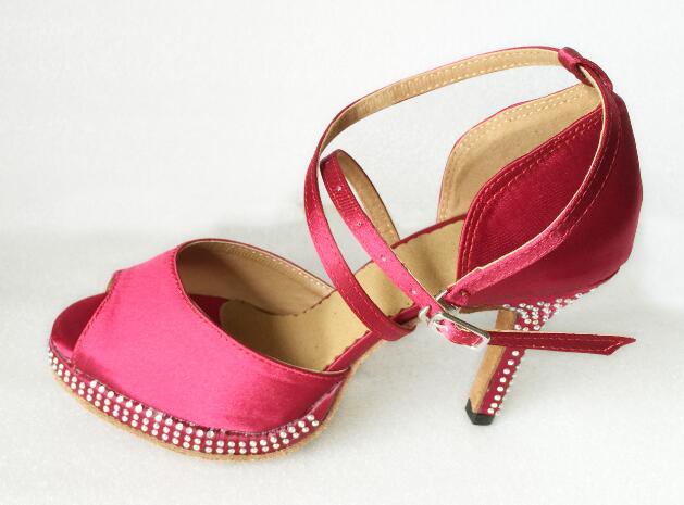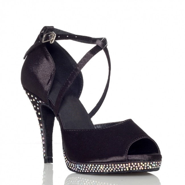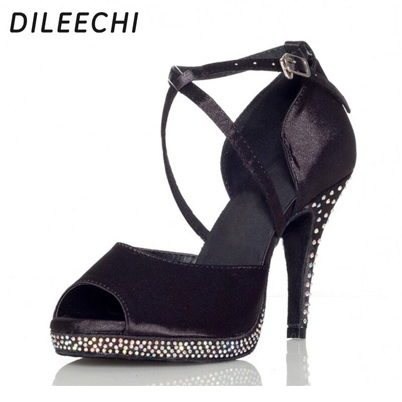 DILEECHI Rhinestones Black Satin Women ultra high heels 10cm Latin dance shoes Waterproof platform Increased Pumps Party shoes