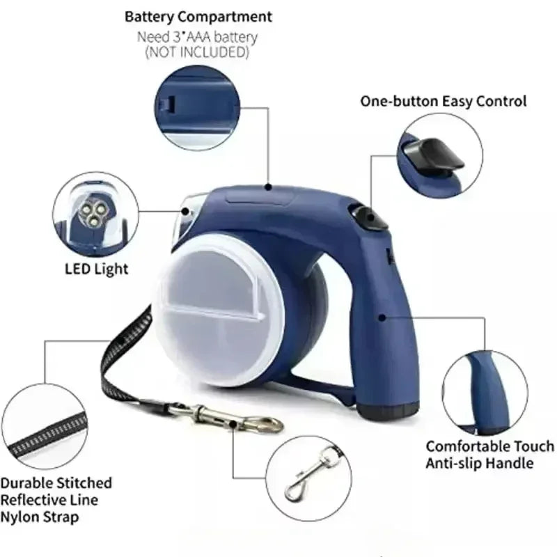 This isn't just a leash; it's a whole mood. We’re talking convenience, innovation, and seriously smart design all rolled into one sleek package. Whether you're hitting the park at dawn, strolling through the city at dusk, or embarking on a spontaneous hike, this leash has your back (and your dog's). It's built for all stages of your dog's glow-up, meaning it's the only leash you'll need as your pup grows. Plus, it comes with all the extras to keep your dog hydrated and your messes handled, so you can be the most prepared pet parent on the block. Get ready to flex on your dog-walking game because this leash is about to be your new fave accessory.