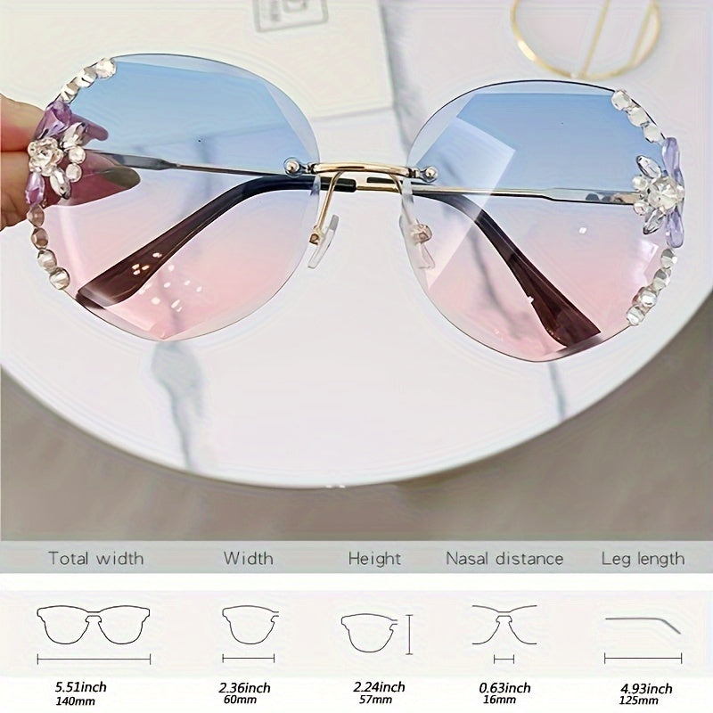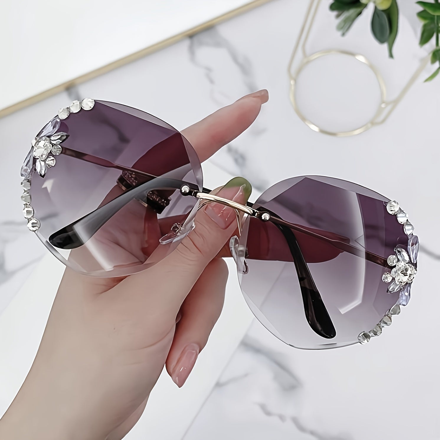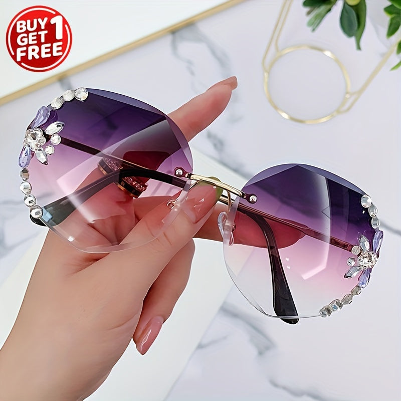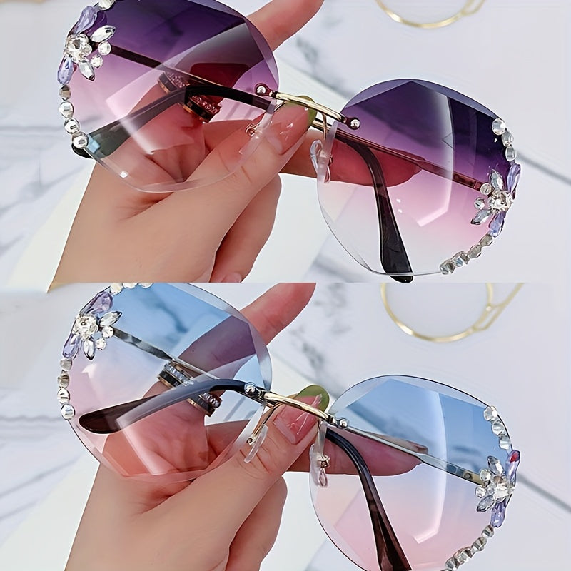 2pcs Shiny Rhinestones Edge-cutting Ladies Fashion Glasses Unframed for daily wear