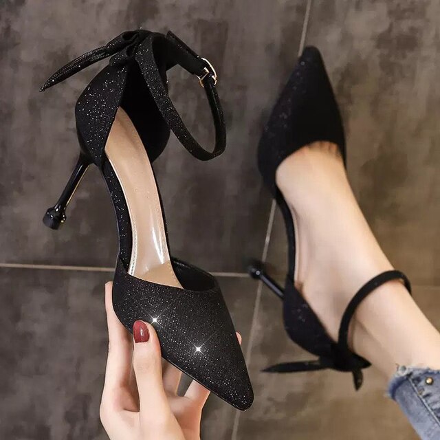 Elegant Ladies Ankle Strap Pumps High Heels Crystal Wedding Shoes Bride for Women 2022 Spring Pointed Toe Luxury Pumps Woman
