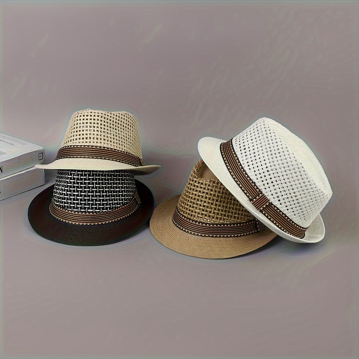 Elegant Panama Hats for Men and Women, Summer Breathable Mesh Weave, Sun Protection Lightweight Fedora - 100% Paper Composition