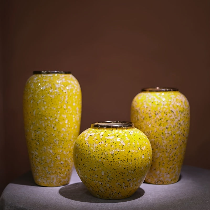 Elegant Yellow Ceramic Vase: Perfect for Flowers, Suitable for Dry Flowers or Centerpiece Decorations, Modern Bohemian Style