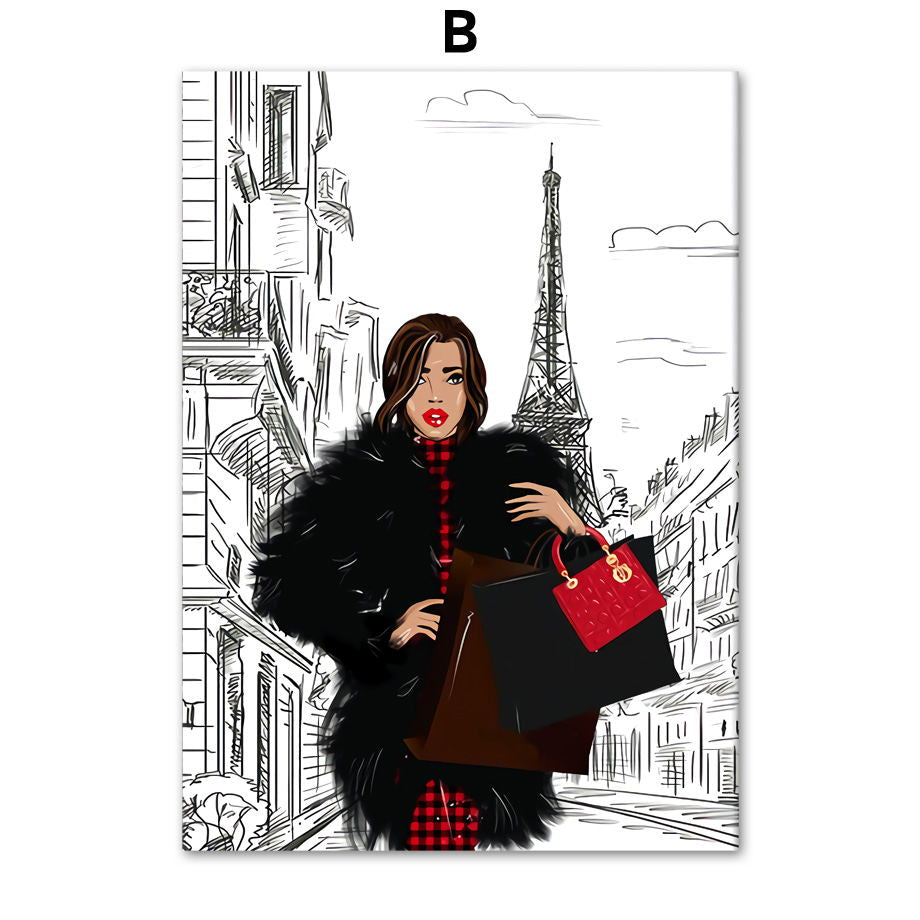 Fashion Bag Girl Balloon Champagne Wall Art Canvas Print