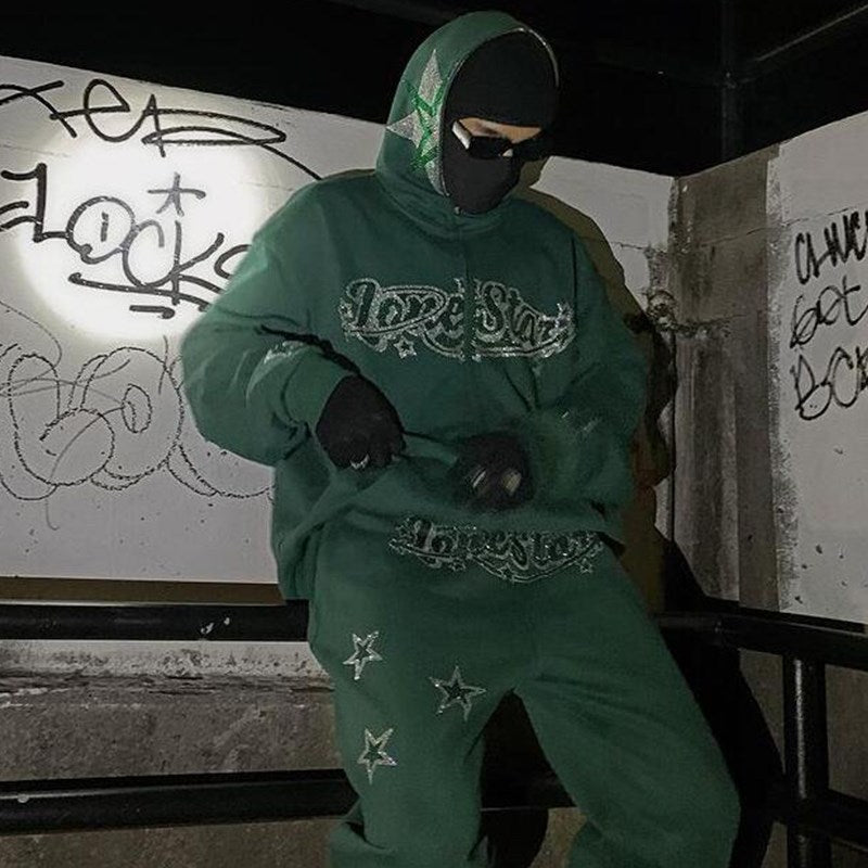 Five-pointed Star Rhinestone Hooded Sweater Zipper Jacket