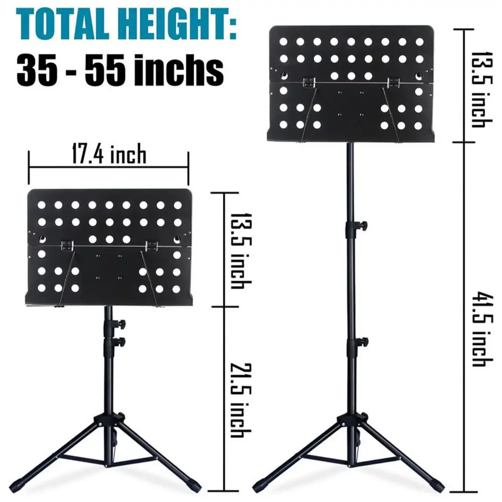 Foldable Music Stand Professional Metal Music Stand Shelf Set With Music Sheet Clip 35-55 Inch Adjustable Tall Stand With Bag
