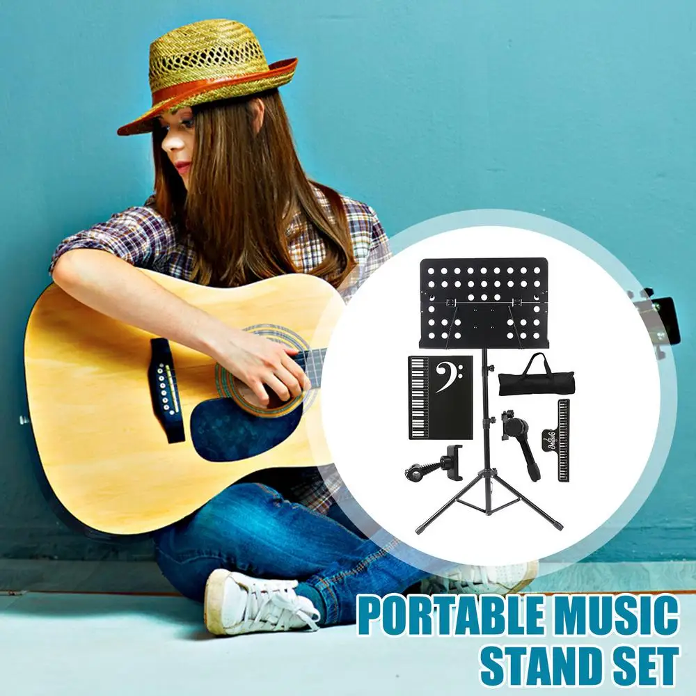 1 set x Sheet Music Stand (Folding iron music stand + portable bag + music clip + music clip + desktop stand foot + mobile phone clip)