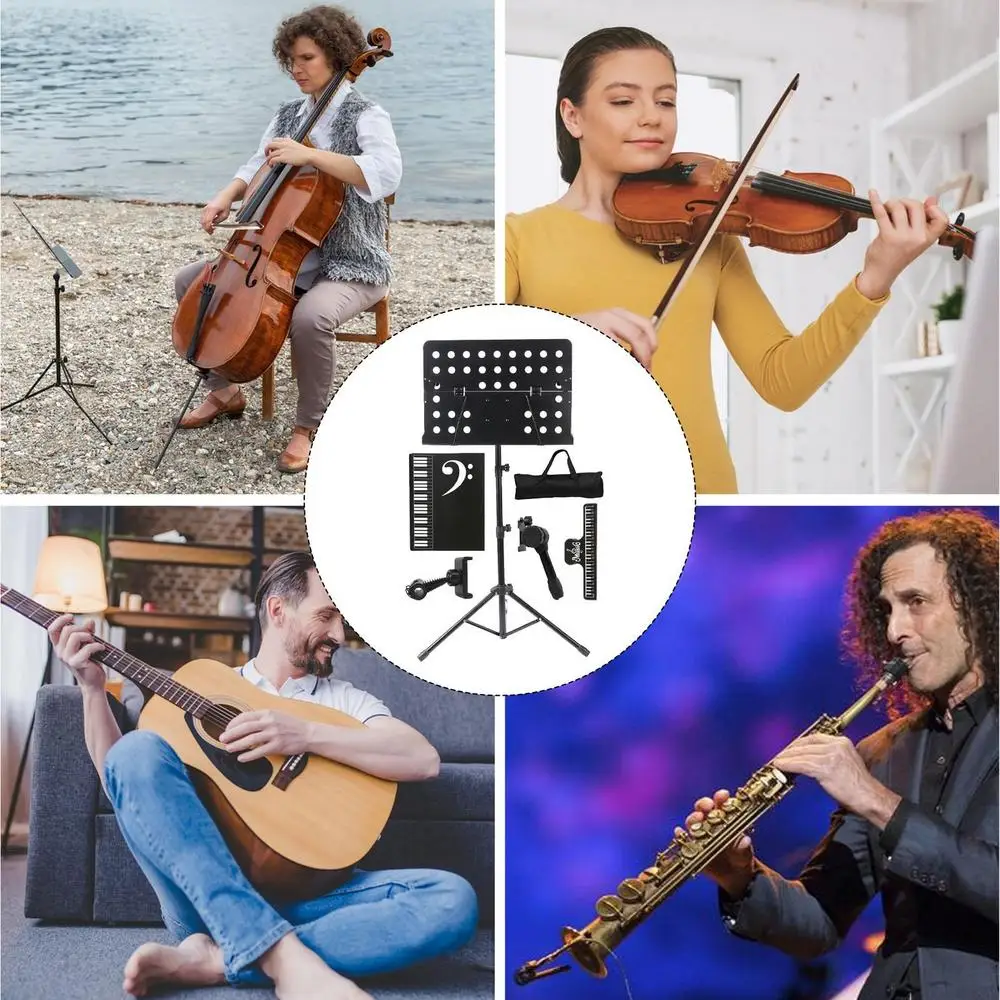 5.Wide Application: Ideal for musicians, this sheet music stand caters to guitarists and pianists alike, ensuring a seamless concert experience and a broad spectrum of uses, from travel to home practice.