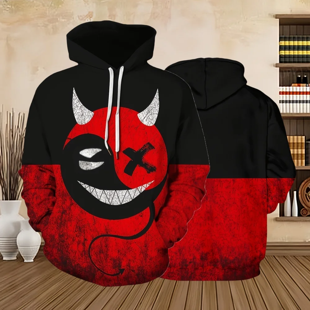 Funny Mens Hoodies Four Seasons Cool Cartoon Demon Print Sweatshirts Clothing Fashion Casual Long Sleeve Hoodies Sweatshirts Men