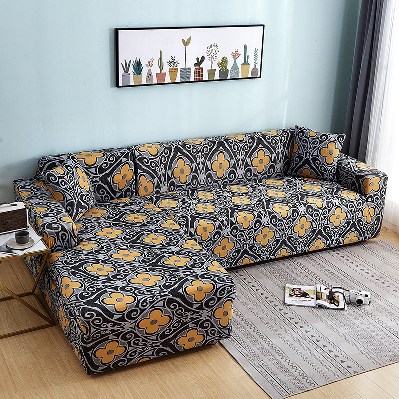 Geometric Design Spandex Corner Sofa Covers Long Elastic Material Couch Cases