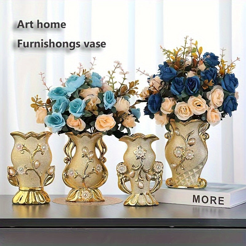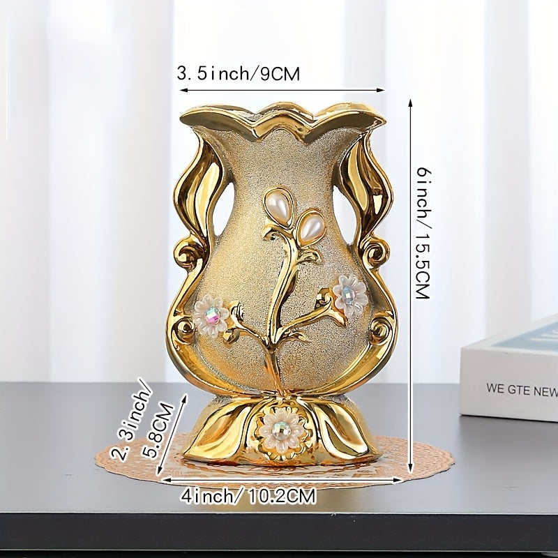 Glam Ceramic Flower Vase 6-Inch Gold Plated Horn-Shaped, Decorative High-End Floral Paterned Vase for Living Room Kitchen Tabletop, Elegant Home Decor Ceramics, Noble Gift - Single Piece