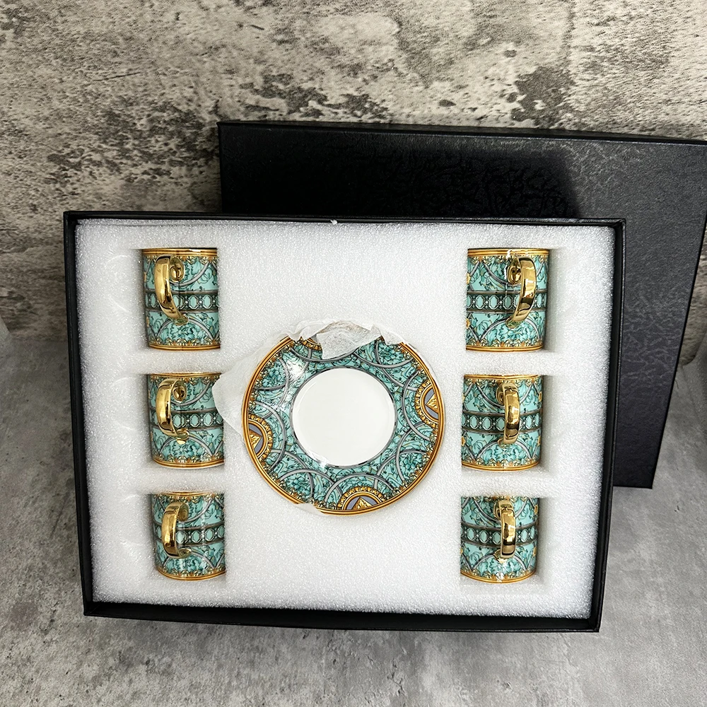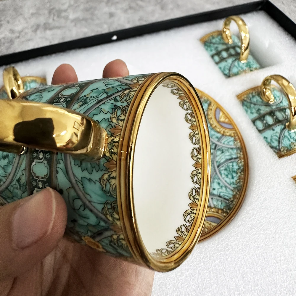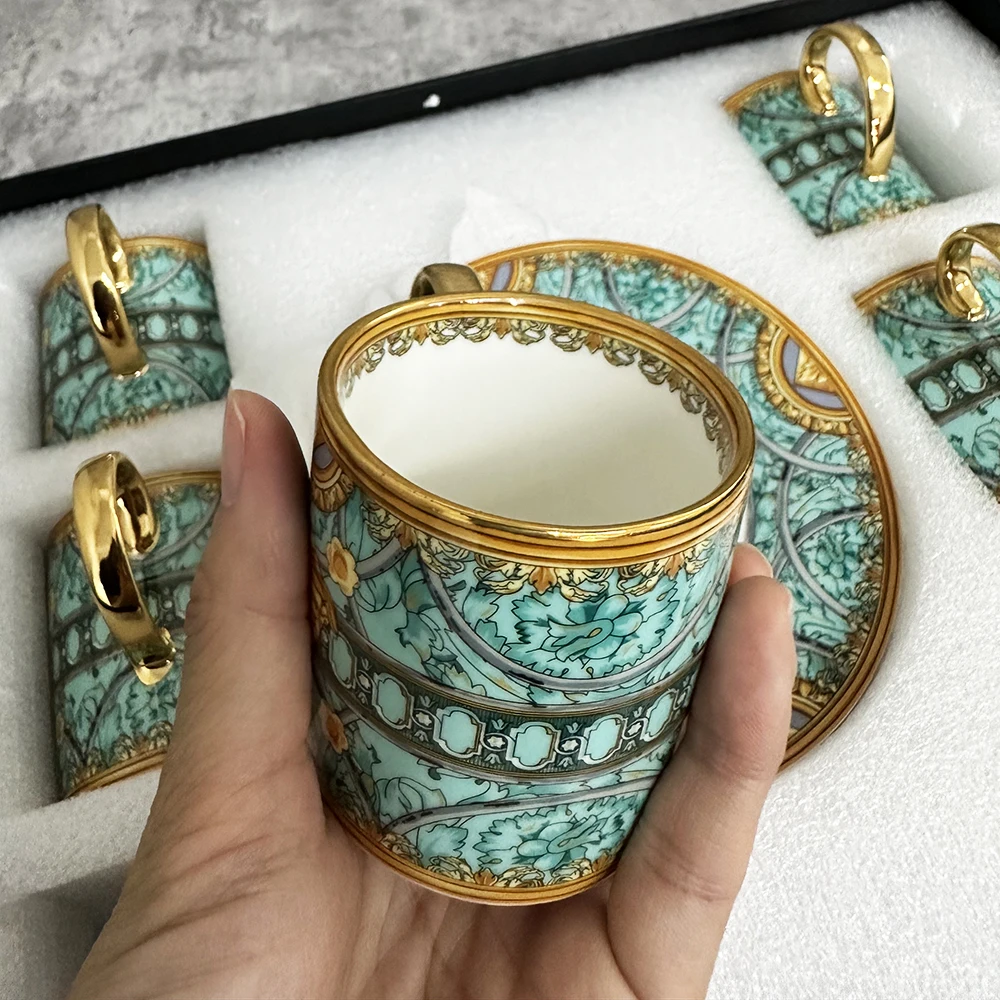 Gold 6 Pcs Top Grade Bone Porcelain Coffee Cups Vintage Ceramic Cups On-glazed Advanced Tea Cups And Saucers Sets Luxury Gifts