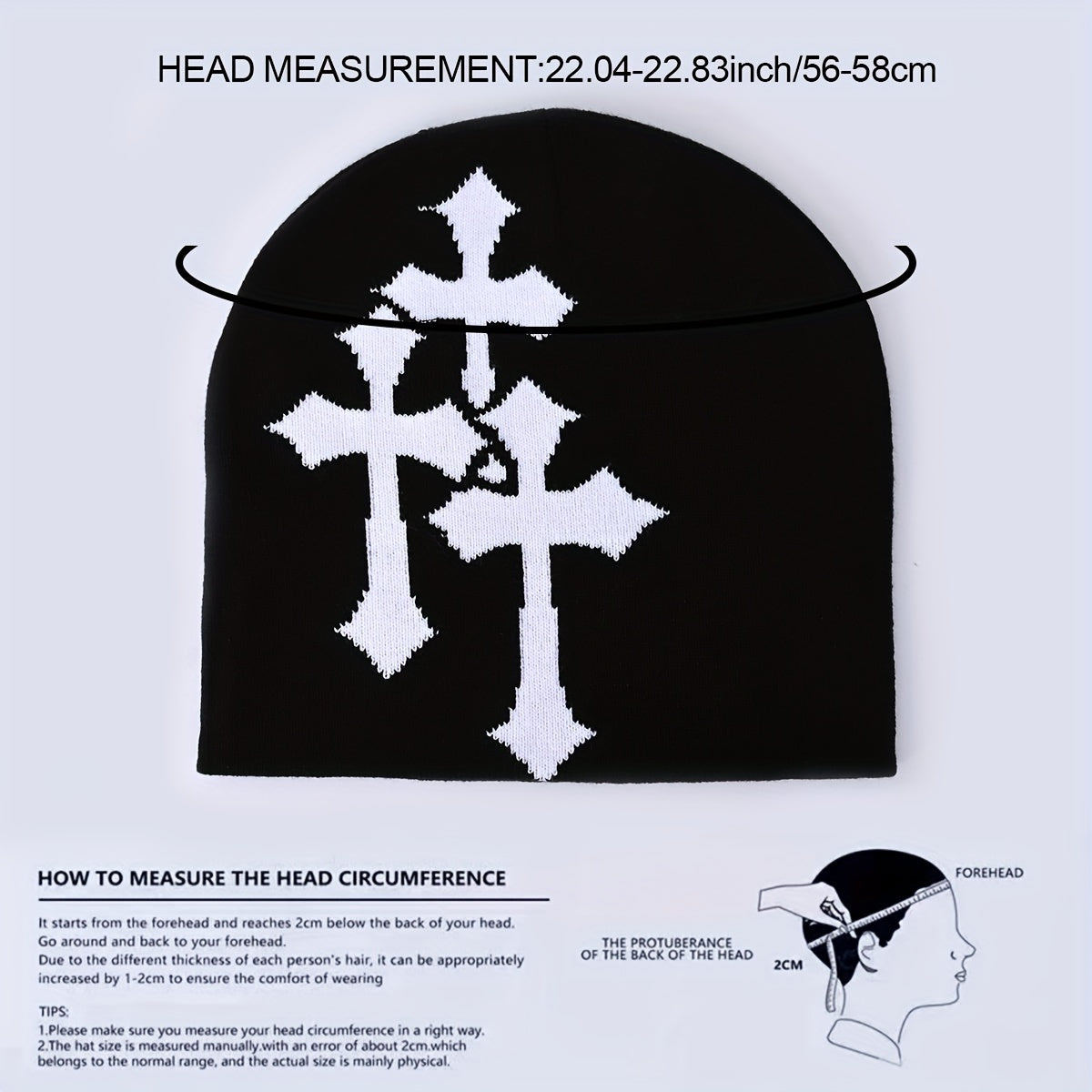 Gothic Cross Jacquard Y2K Beanie Hip Hop Candy Color Skull Cap Lightweight Elastic Knit Hats Warm Beanies For Women & Men