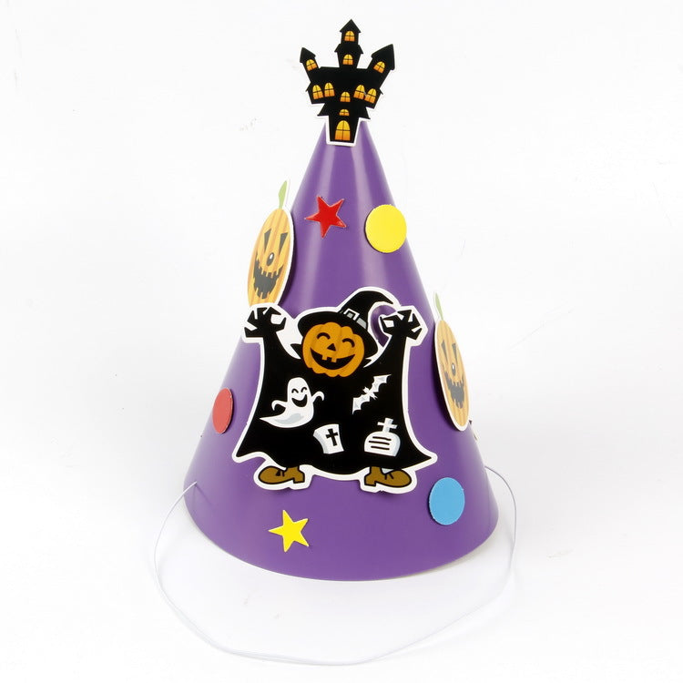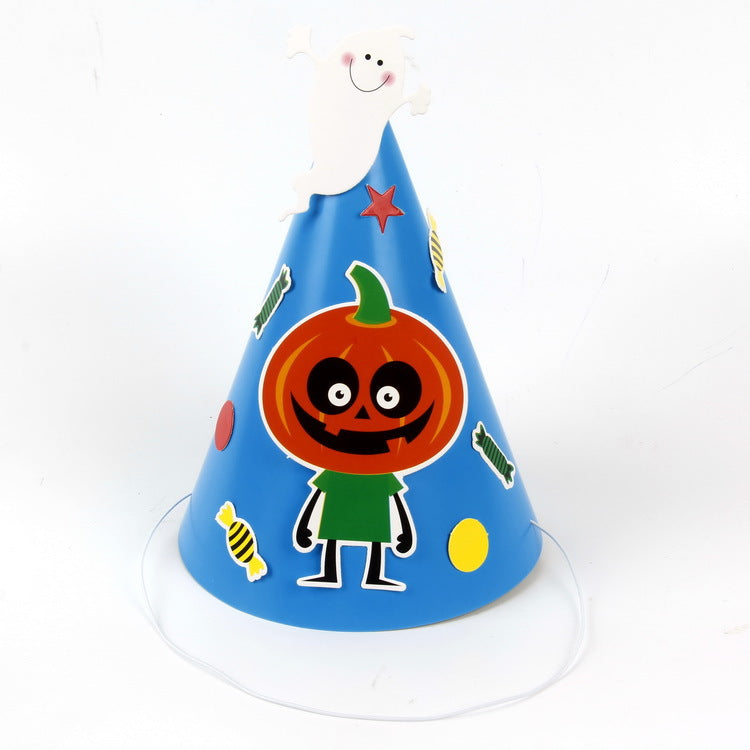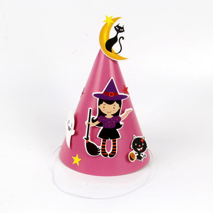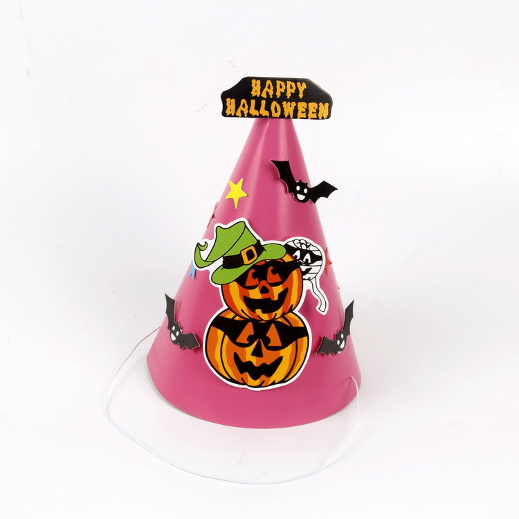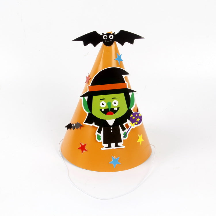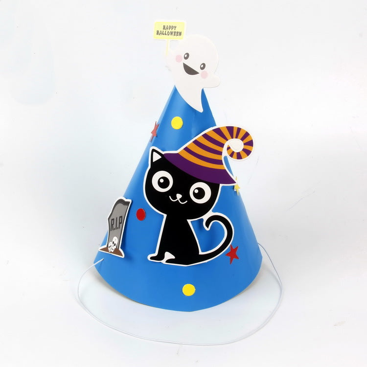 Color: blue (cartoon BOO skull hat), purple (cartoon BOO bat hat), red (cartoon moon pumpkin hat), yellow (cartoon HAPPY HALLOWEEN spider hat), pink (cartoon pumpkin, bat hat)) , pink (cartoon witch, cat hat), orange (cartoon spider hat)), orange (cartoon bat hat), blue (cartoon cat hat), blue (cartoon pumpkin head hat) )), purple (cartoon bat star hat), purple (cartoon castle pumpkin hat)