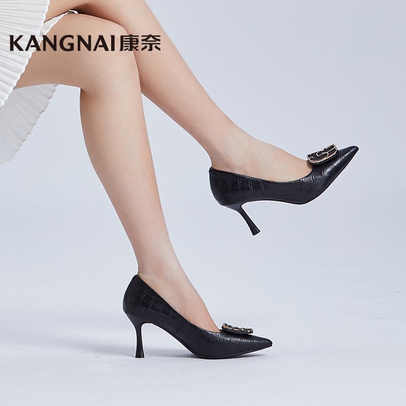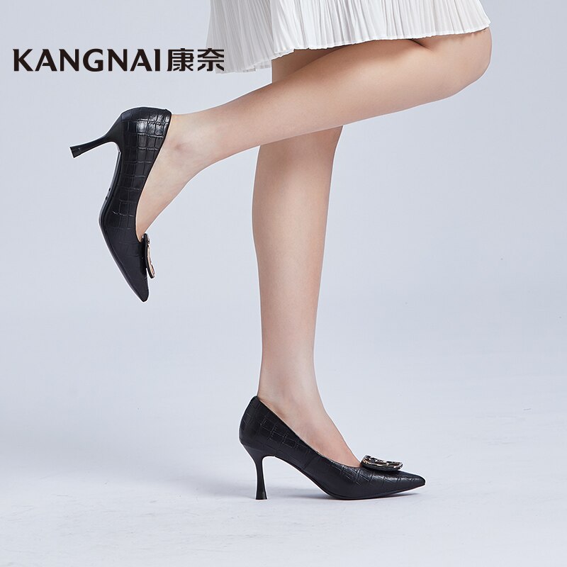 Kangnai Women Pumps Cow Leather Shallow Pointed Toe High Heels Wedding Party Thin Heels Female Dress Shoes