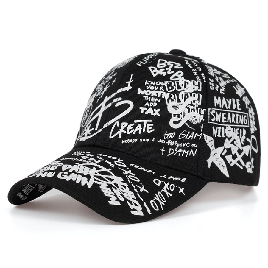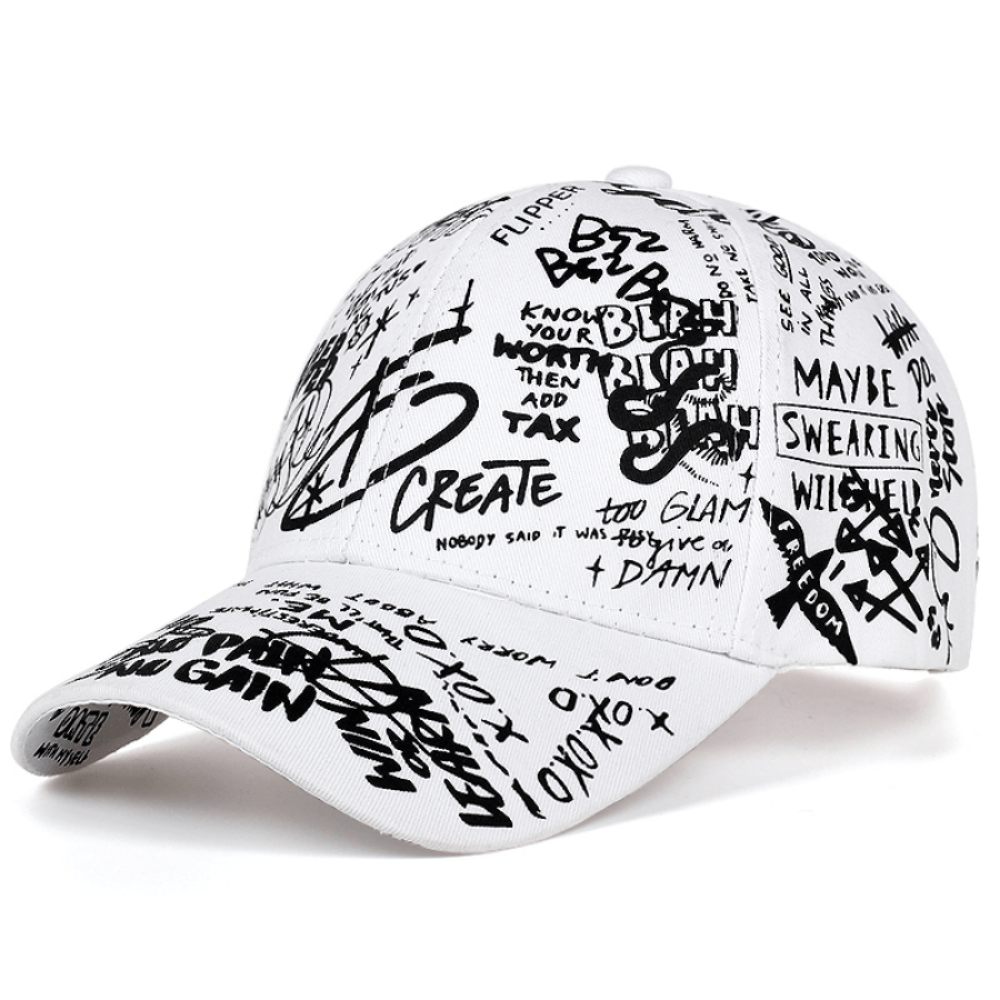 Letter Graffiti Print Baseball Cap, Curved Brim Hip Hops Adjustable Outdoor Sun Hat For Fishing Hiking Cycling