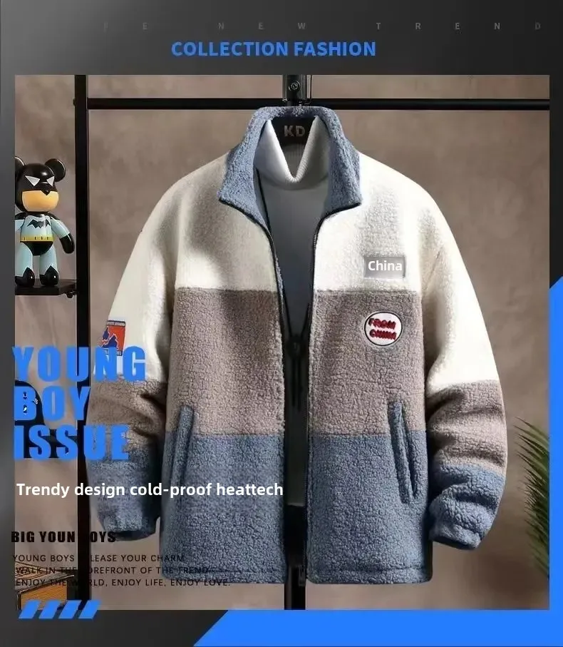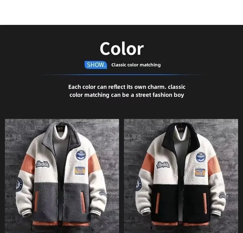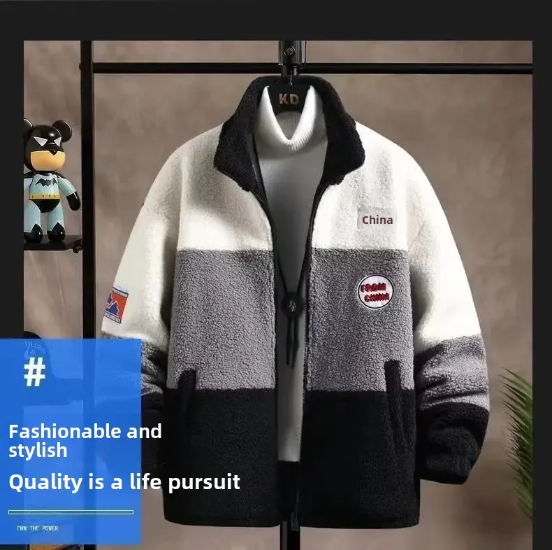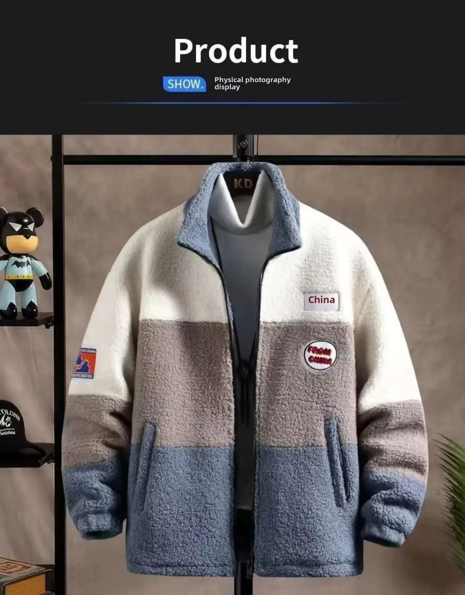 Men's Fleece-lined Thickened Jacket New Arrival Autumn Winter Warm Outerwear Color Blockunique Style Loose Fit Parkas