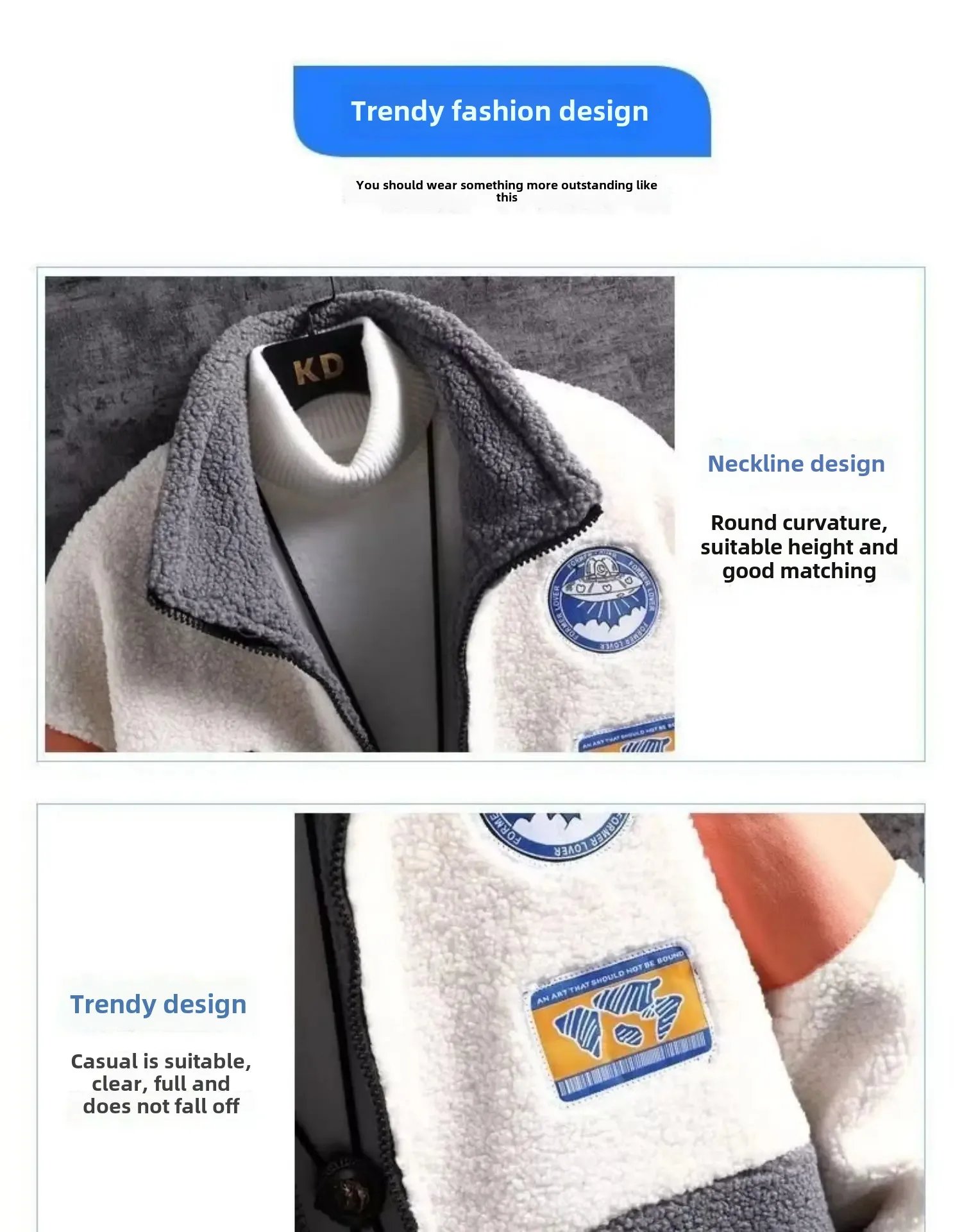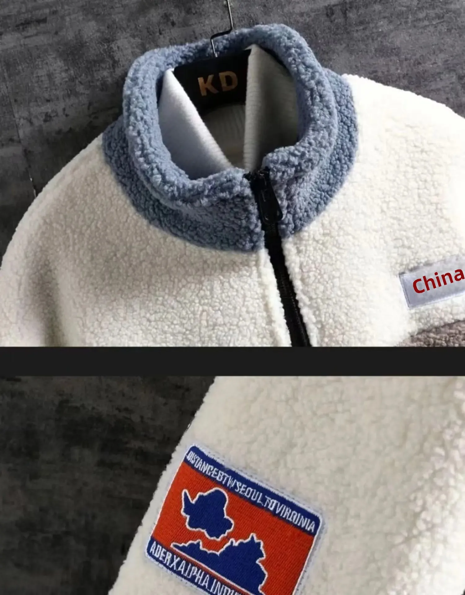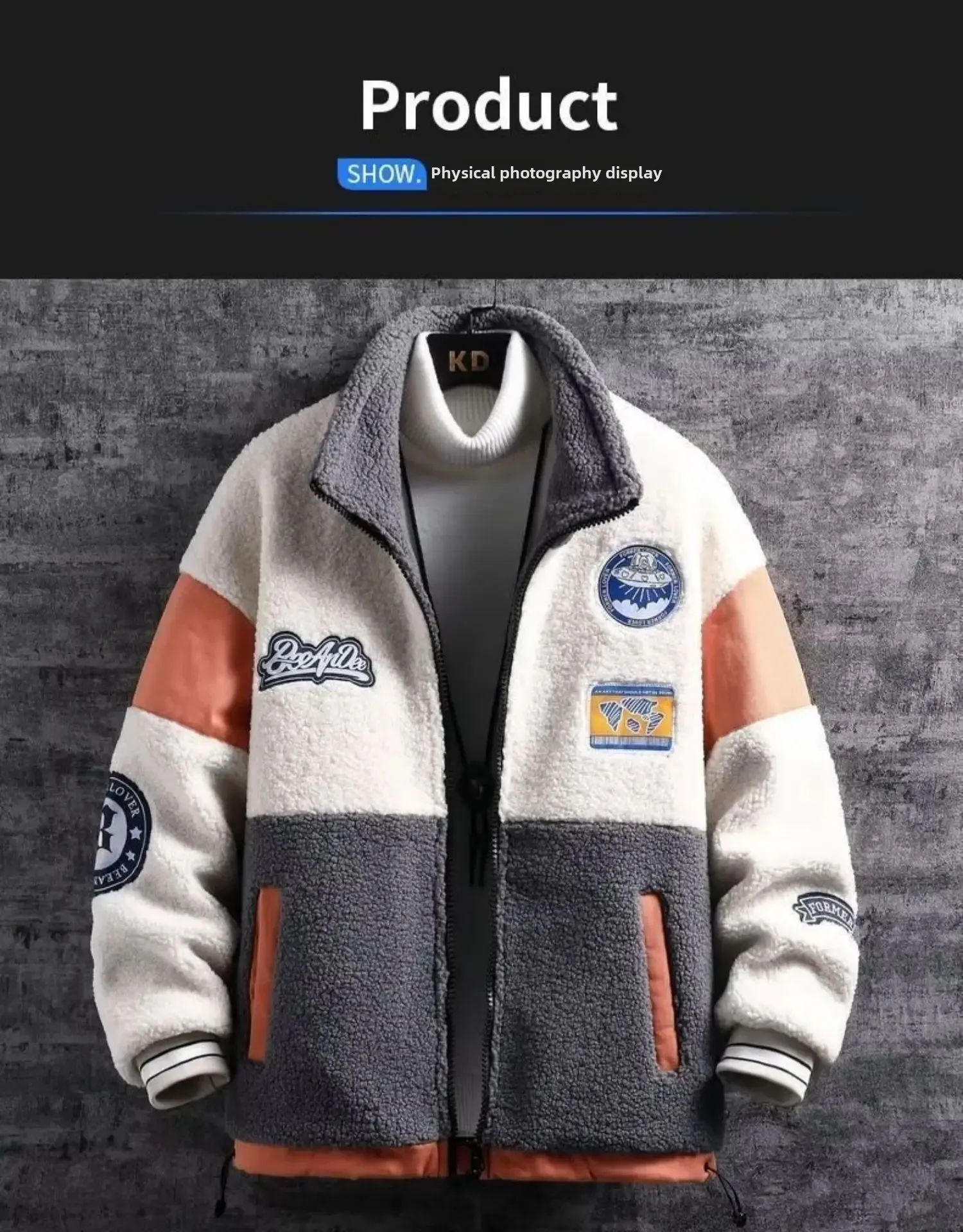 Men's Fleece-lined Thickened Jacket New Arrival Autumn Winter Warm Outerwear Color Blockunique Style Loose Fit Parkas