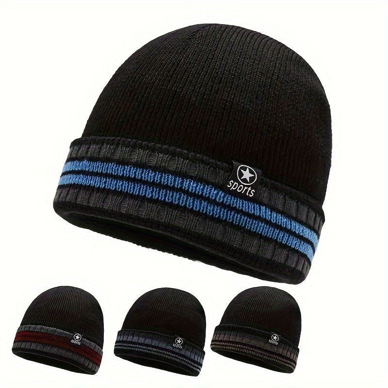 Men's Knitted Hat Winter Warm Velvet Thickened Hat, Outdoor Cycling Cold-proof Ear Protection Pullover Hat