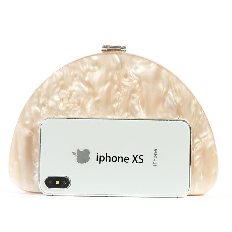 New Fashion Semicircle Wallet Women Messenger Acrylic Beige Solid Dinner Handbags Woman Evening Bags Trendy Party Clutch Purse